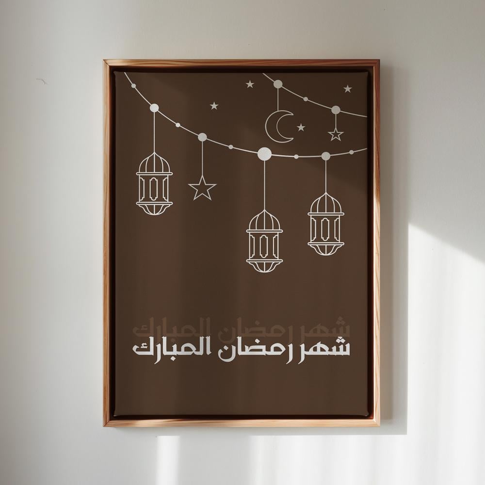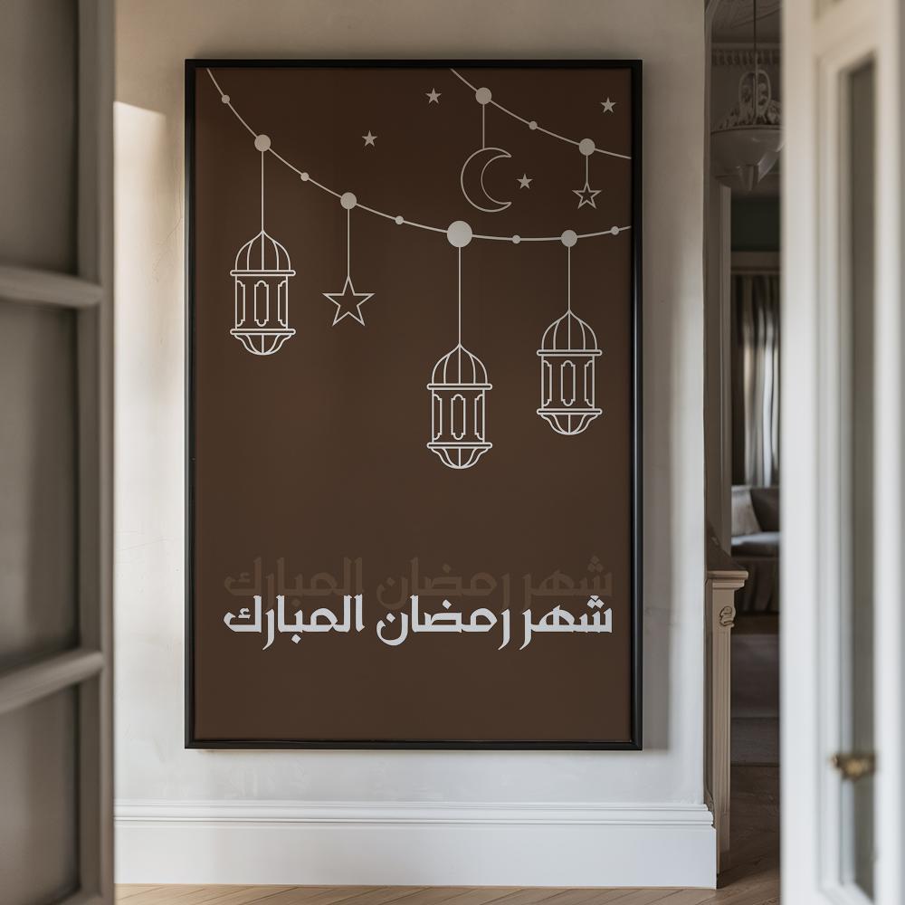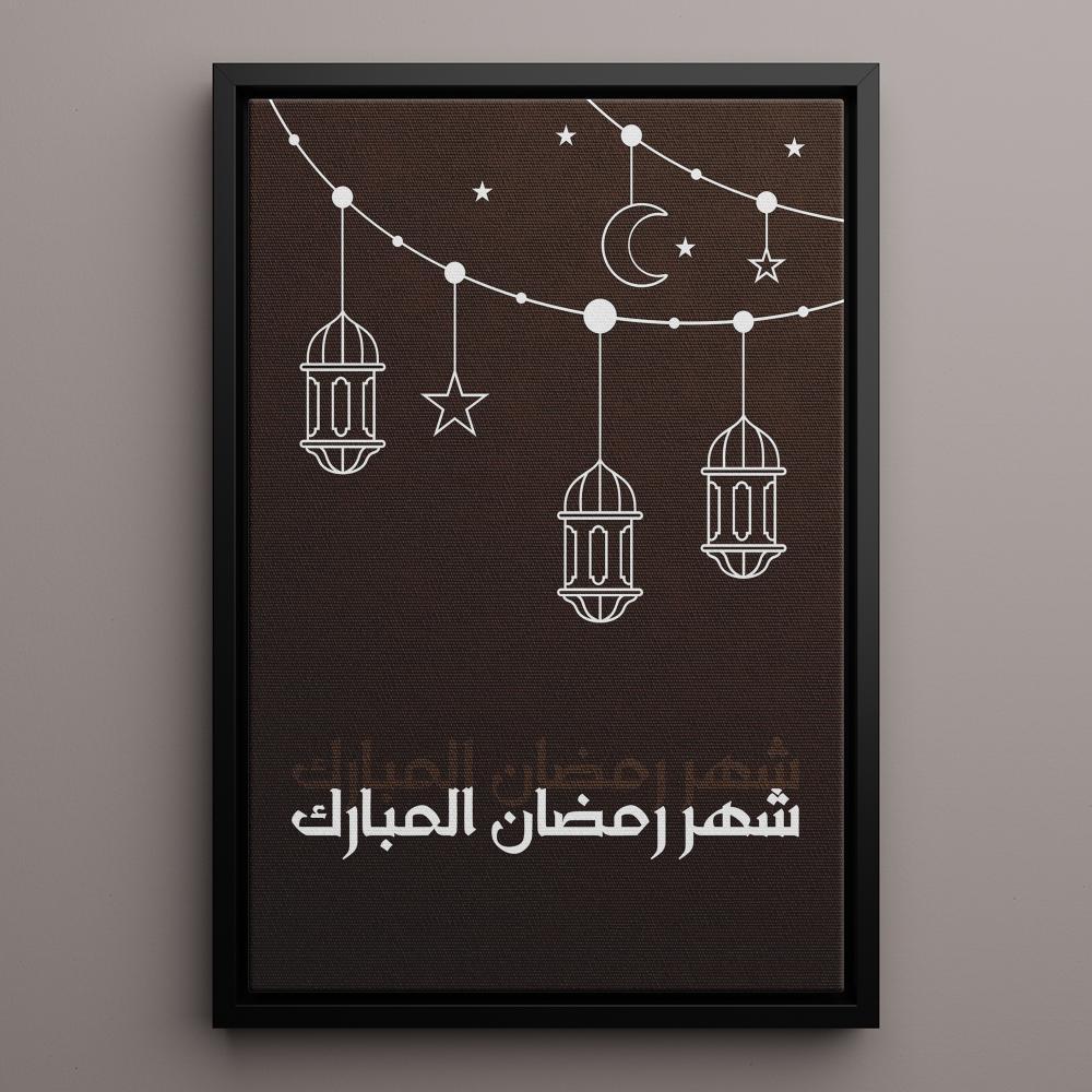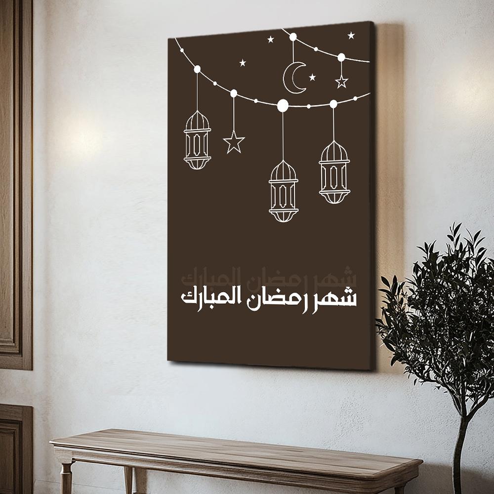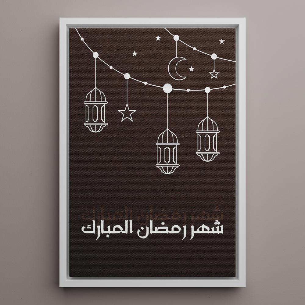 - تتميز هذه اللوحة بألوانها الجميلة التي تمزج بين الأبيض والبني حيث تظهر الخلفية باللون البني والرسومات وجملة شهر رمضان تظهر باللون الأبيض.
