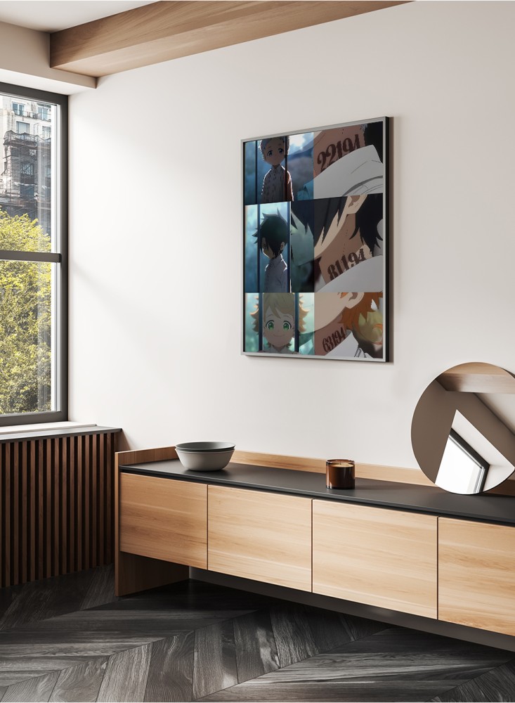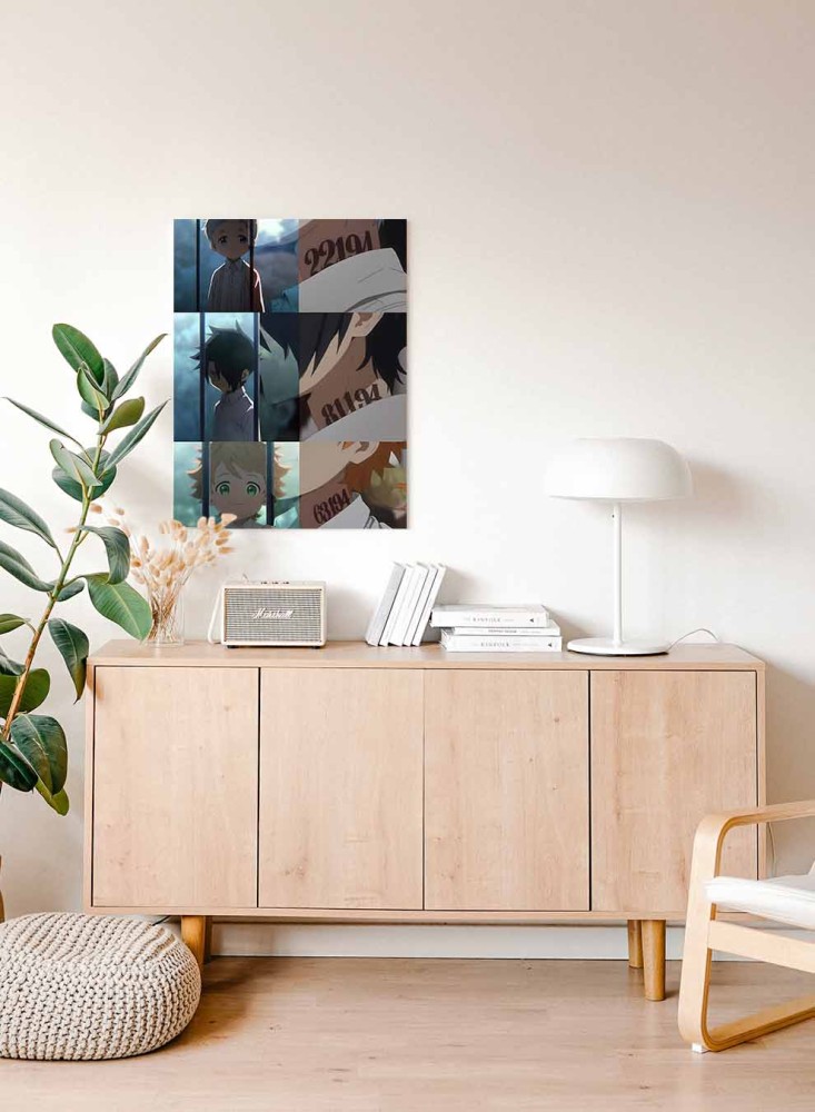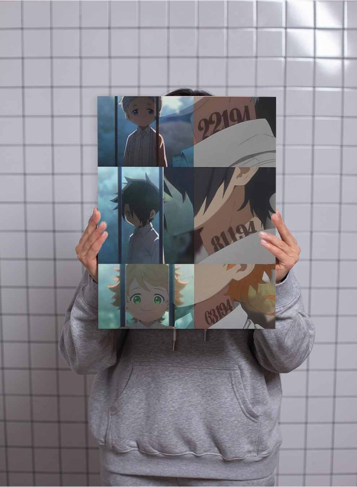 نقدم لك في لوحة لوحات جدارية انمي للشخصيات الرئيسية في نيفرلاند الموعودة وهي سلسلة يابانية شهيرة. تقسّم اللوحة إلى 6 مربعات حيث تظهر الشخصيات في الجانب الأيسر وفي الجانب الأيمن يظهر الكود الخاص بكل شخصية، إنها هدية رائعة لمحبي الأنميشن الياباني. لا تتأخر في طلبها الآن من متجر لوحة لتصلك في أسرع وقت ممكن مع الأدوات اللازمة للتعليق.