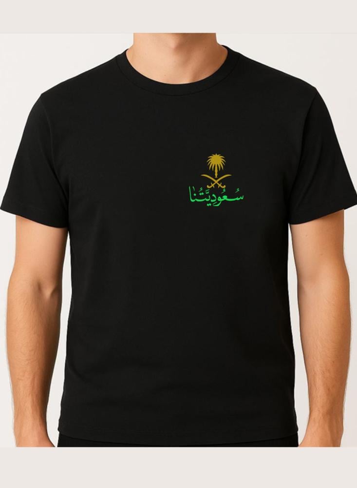 احتفل باليوم الوطني ويوم التأسيس أو افتخر بالانتماء للوطن في أي وقت مع هذا التيشيرت المميز، المصمم ليناسب الجنسين النساء والرجال. مصنوع من مزيج ناعم غني بالقطن؜ وياقة مستديرة كلاسيكية. يجمع بين الأناقة والهوية، مثالي للارتداء بكل فخر.