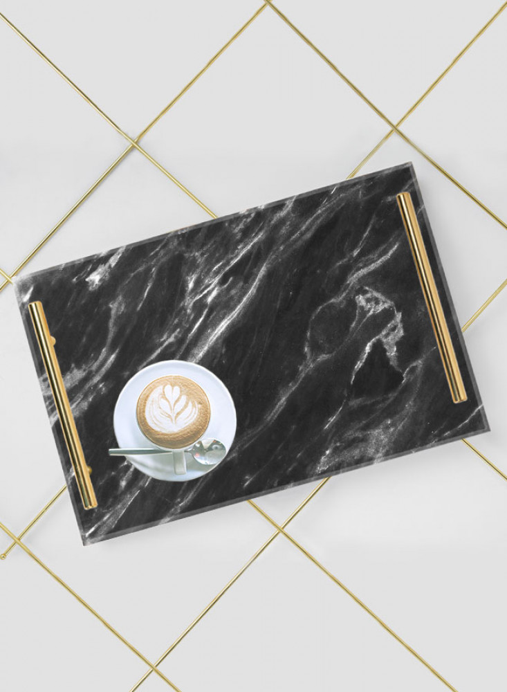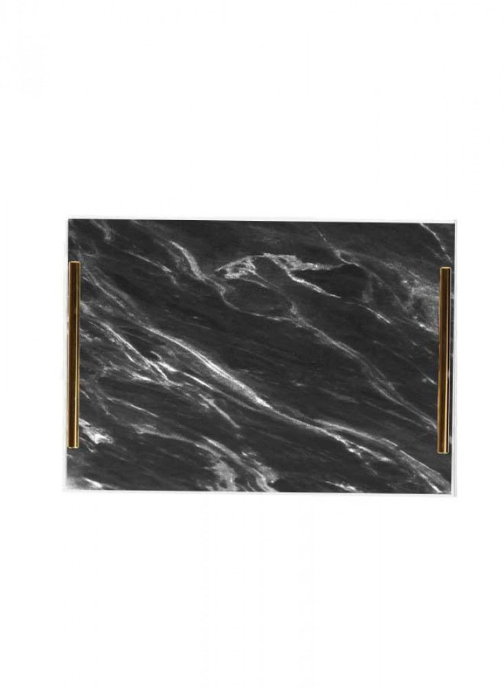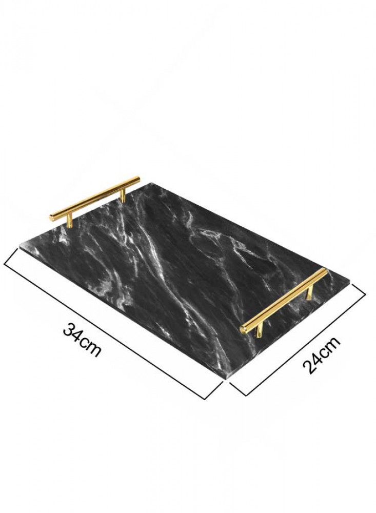 صينية تقديم مصنوعة من الأكريليك مزخرفة بتصميم شكل رخامي بمقابض معدنية ذهبية اللون