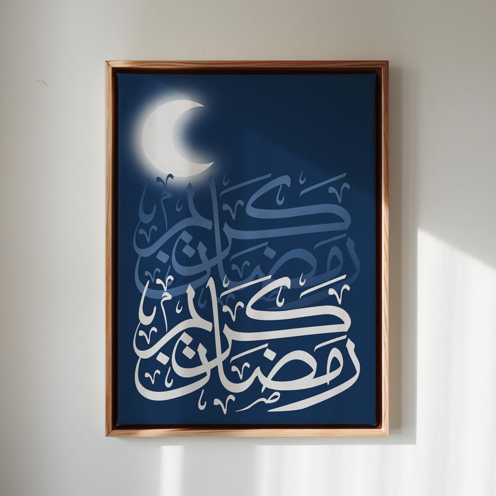 لوحة لرمضان بتصميم رمضان كريم مع هلال مضيء هي خيارك المثالي من أجل الاحتفال بقدوم شهر رمضان المبارك. احصل عليها الآن من متجر لوحة بأعلى جودة وبسعر مناسب للميزانيات المختلفة. تتميز اللوحة بألوانه الواضحة والجميلة، بالإضافة إلى صناعتها من خامة الكانفاس المتين الذي يعيش طويلًا ولا يتعرض للضرر. يمكنك أيضًا إرسالها كهدية إلى من تحب.