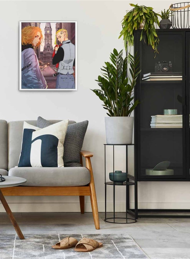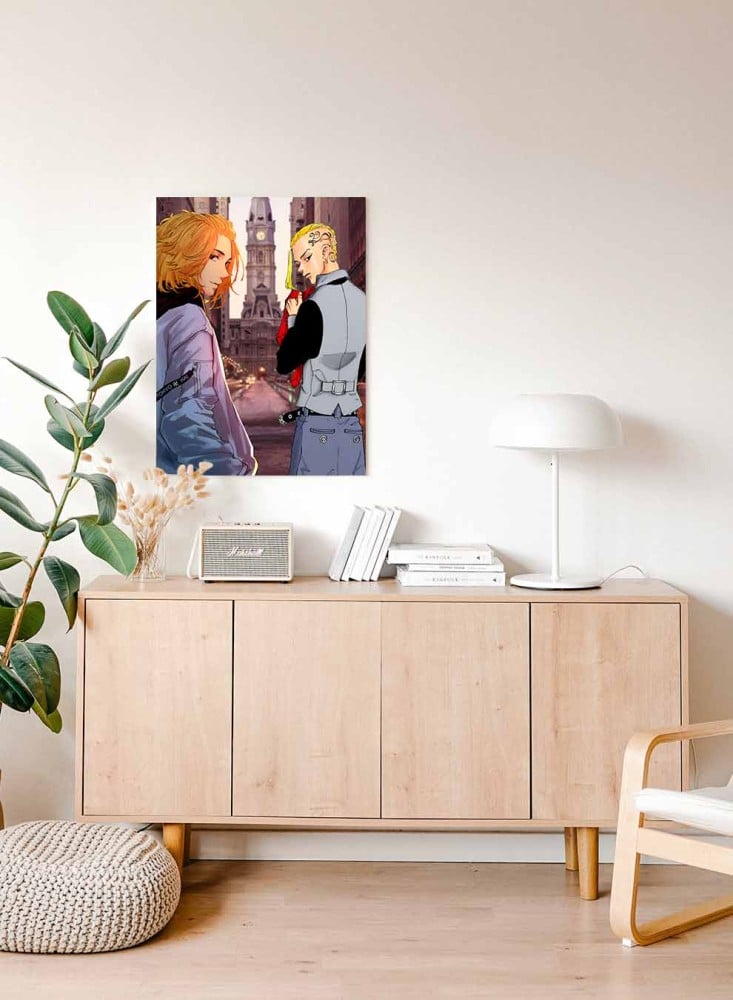 لوحة كانفاس على إطار خشبي بتصميم دراكون و مايكى أنمي طوكيو ريفينجرز