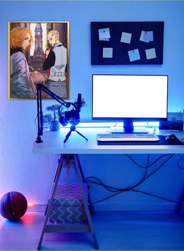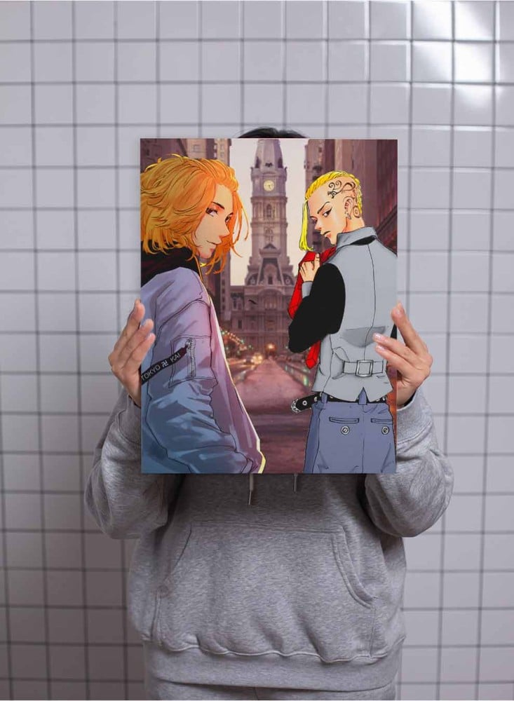 • أكثر من شخصية: تجمع اللوحة بين شخصية دراكون وشخصية مايكي من سلسلة طوكيو ريفنجرز اليابانية الشهيرة.