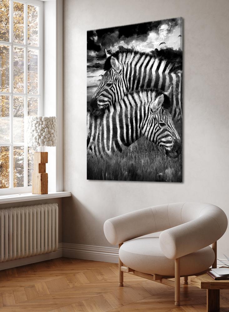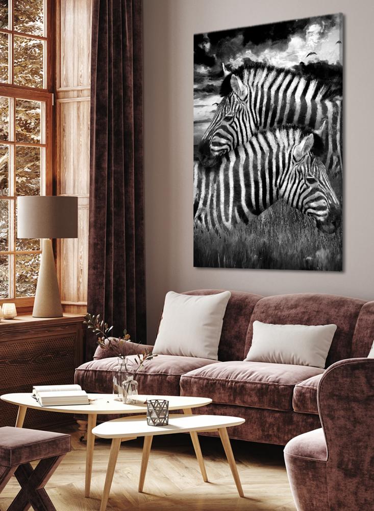 لوحة كانفاس على إطار خشبي بتصميم لوحة زيتية حمار وحشى