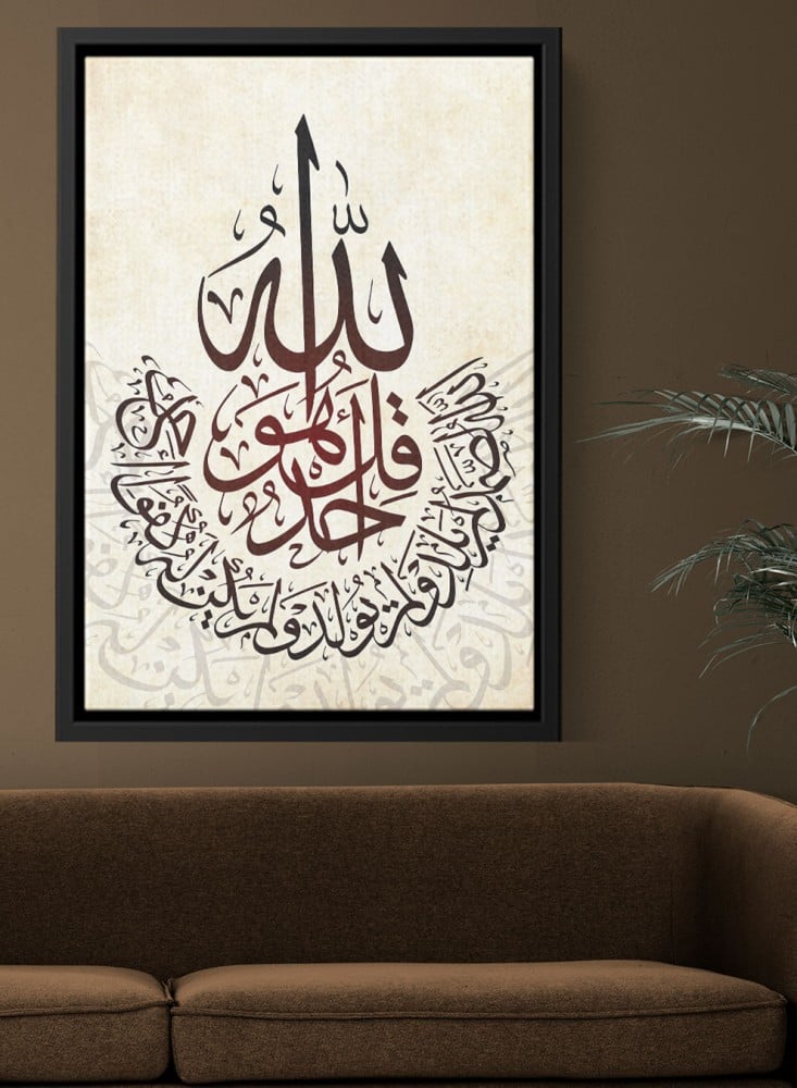 لوحة كانفاس على إطار خشبي بتصميم إسلامي سورة الإخلاص