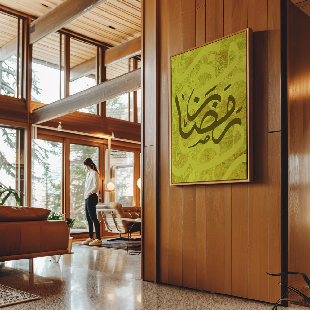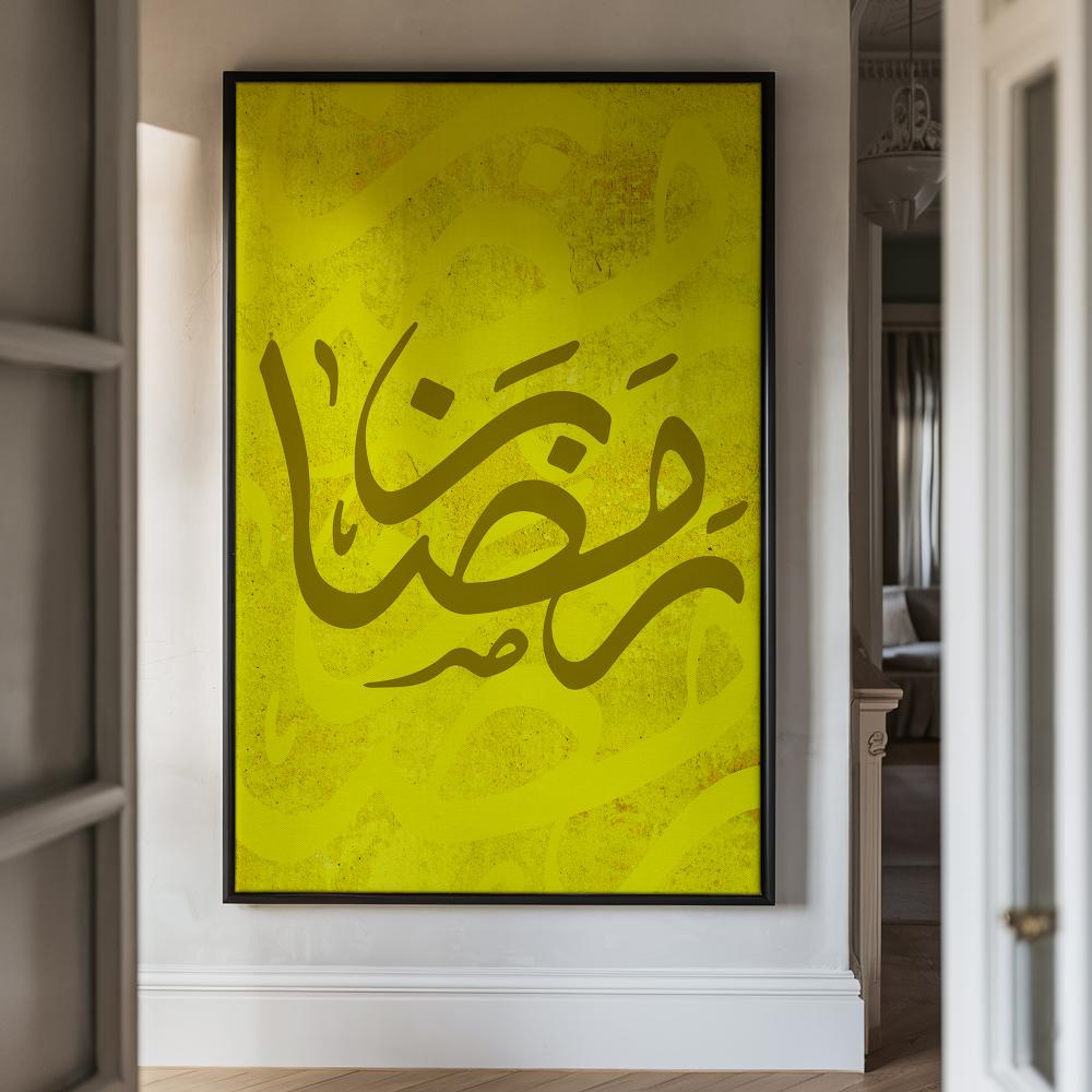 • تتميز اللوحة بألوانها الجميلة والمميزة حيث تأتي مع خلفية صفراء جميلة ومكتوب عليها كلمة رمضان بخط مميز.