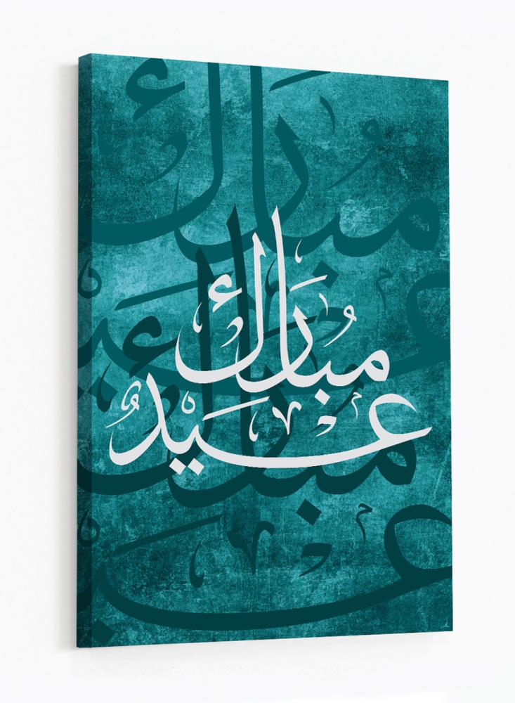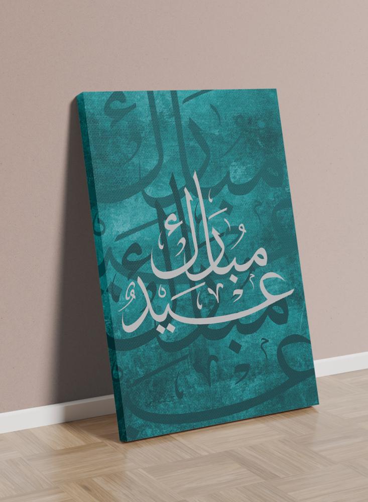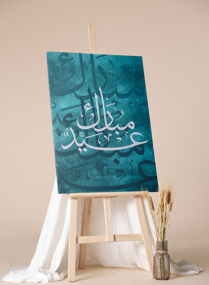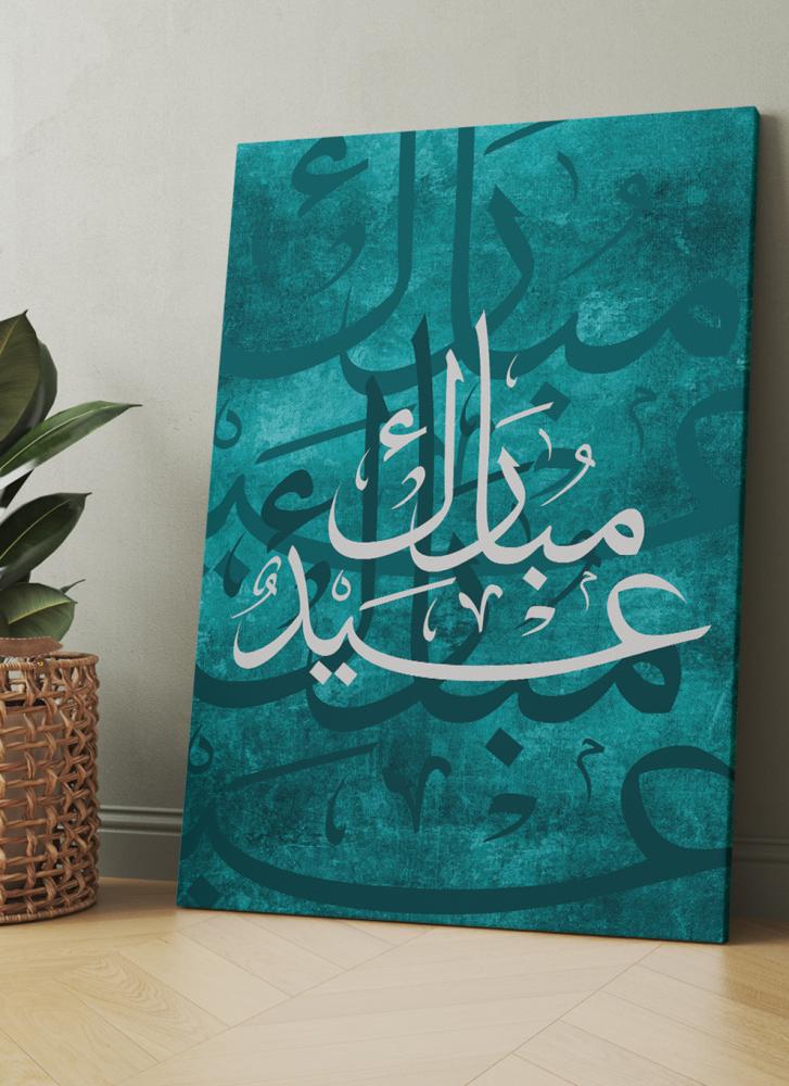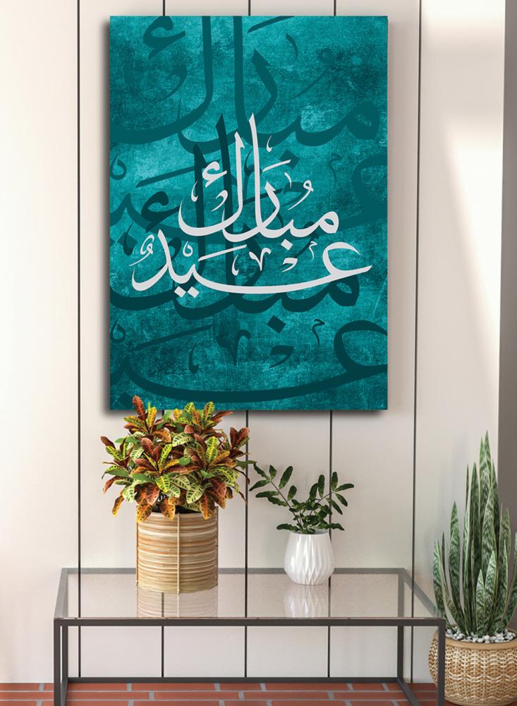 لوحة كانفاس على إطار خشبي بتصميم عيد مبارك