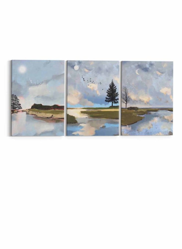طقم من ٣ لوحات كانفاس على إطار خشبي بتصميم أشجار على البحيرة