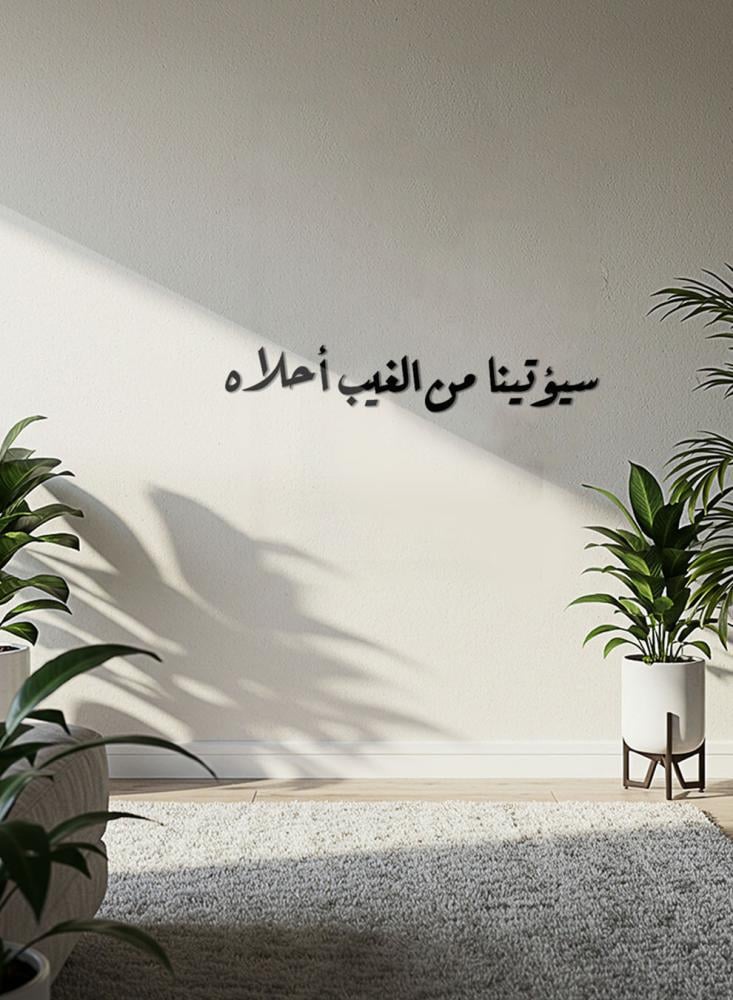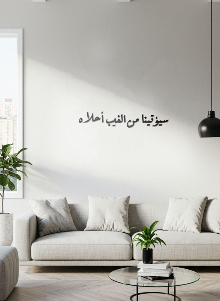 أضف لمسة من الأناقة الروحية إلى منزلك مع هذه اللوحة الجدارية المصنوعة من الأكريليك والمصممة على شكل عبارة سيؤتينا من الغيب أحلاه بتقنية القطع بالليزر الدقيقة. تتميز بتصميم أنيق من الأكريليك الأسود بسماكة ٣ ملم بمظهراً راقياً يضفي على المكان طابعاً فريداً. مزوّدة بلاصق خلفي قوي لتثبيت سهل وآمن على الجدار دون الحاجة إلى أدوات أو حفر. تأتي هذه اللوحة بمقاس ٧٠ × ١٢٫٦ سم. صنعت بفخر في المملكة العربية السعودية.