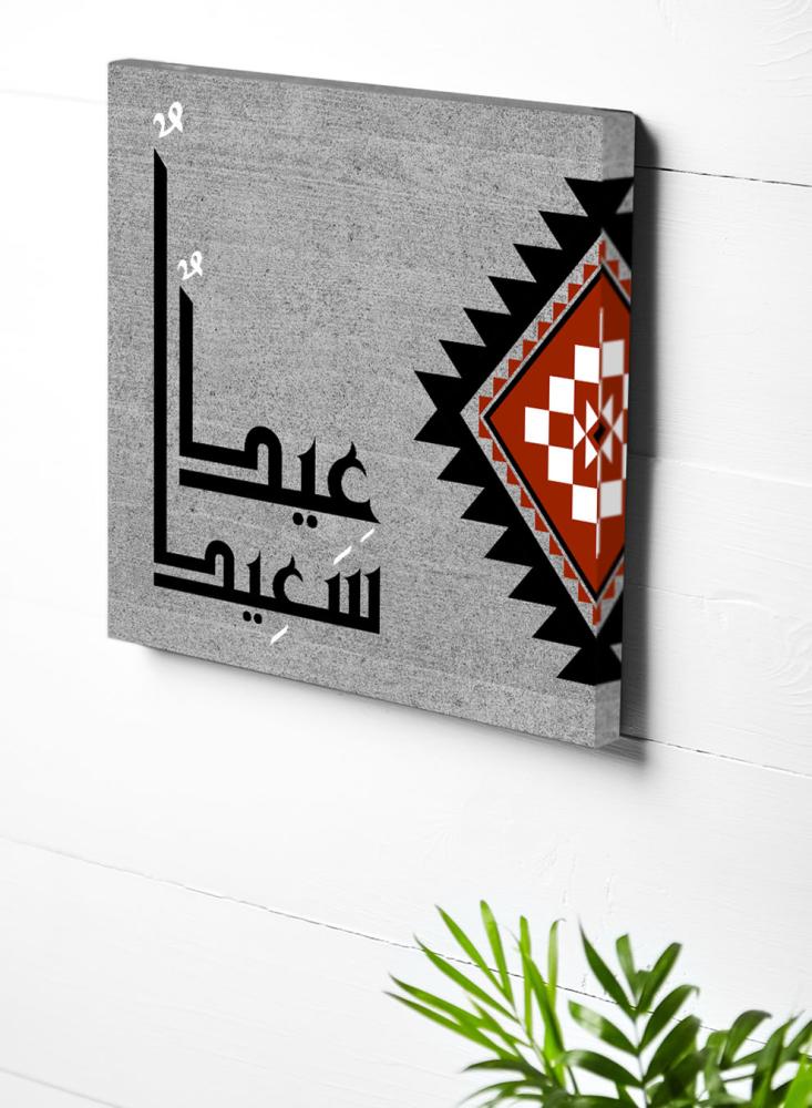 لوحة كانفاس على إطار خشبي بتصميم عيدكم سعيد