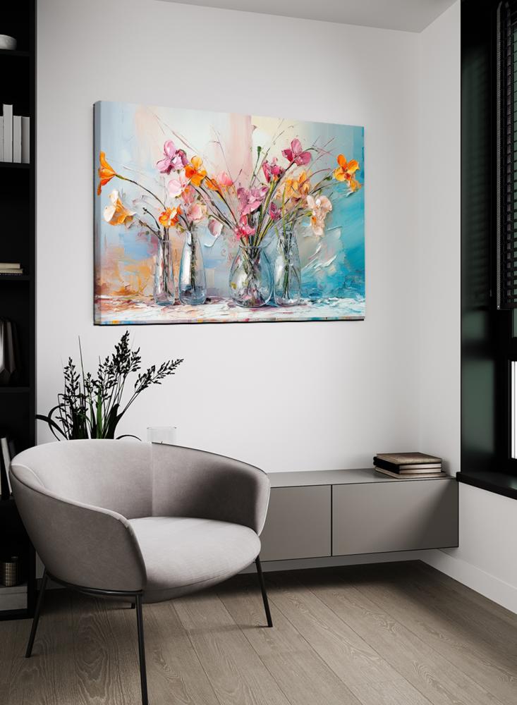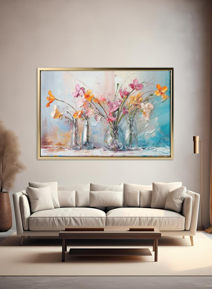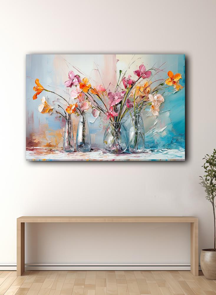 لوحة كانفاس على إطار خشبي بتصميم زهور ملونة