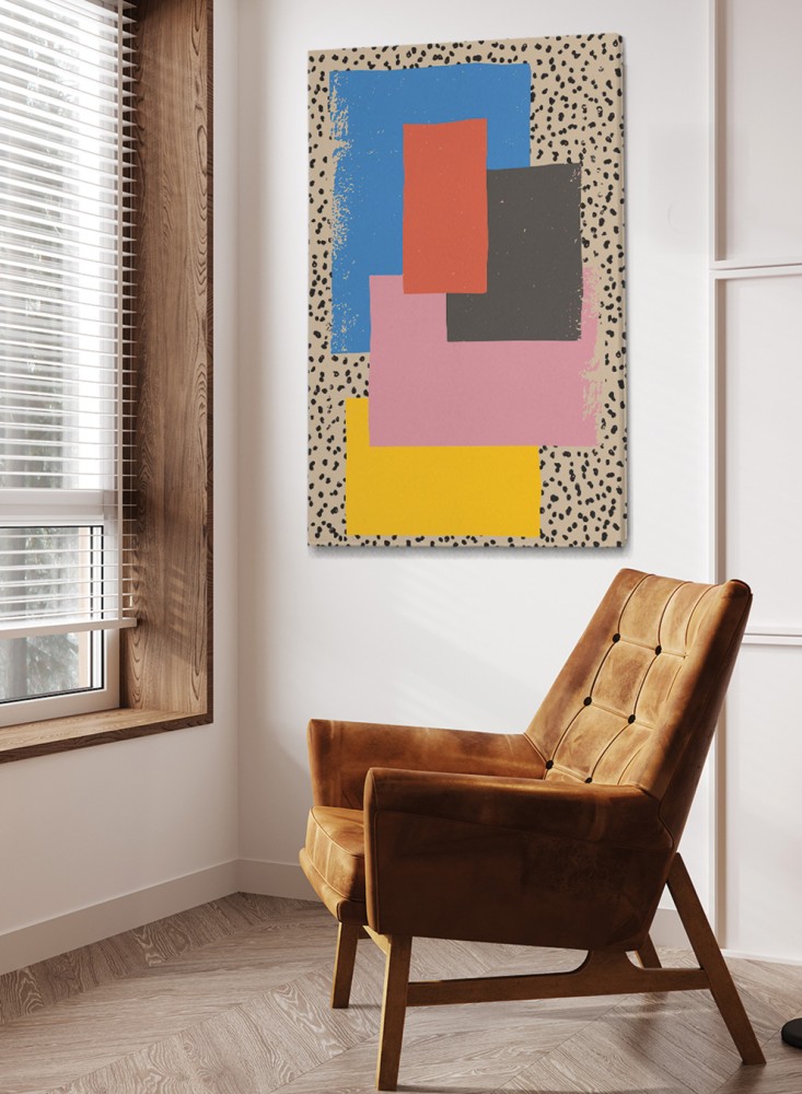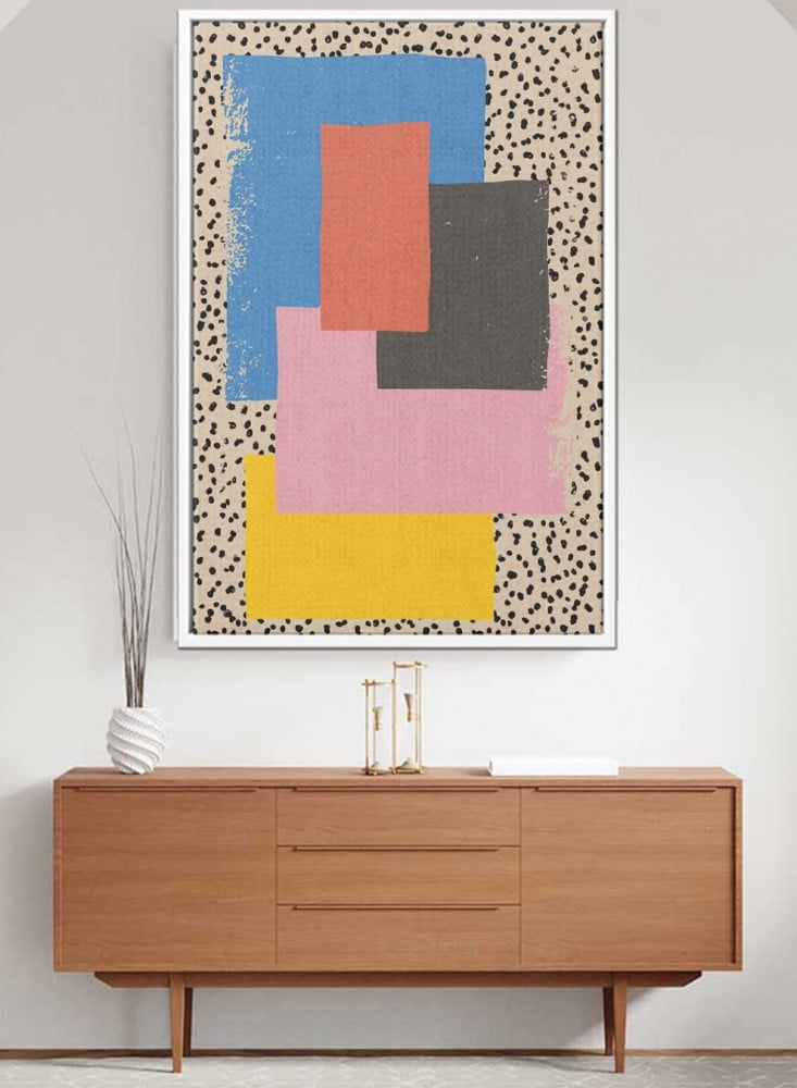 • لوحة كانفاس على إطار خشبي بتصميم فن تجريدي.