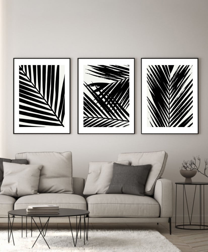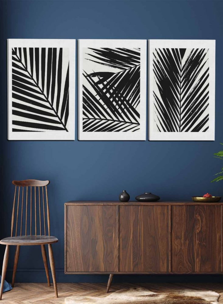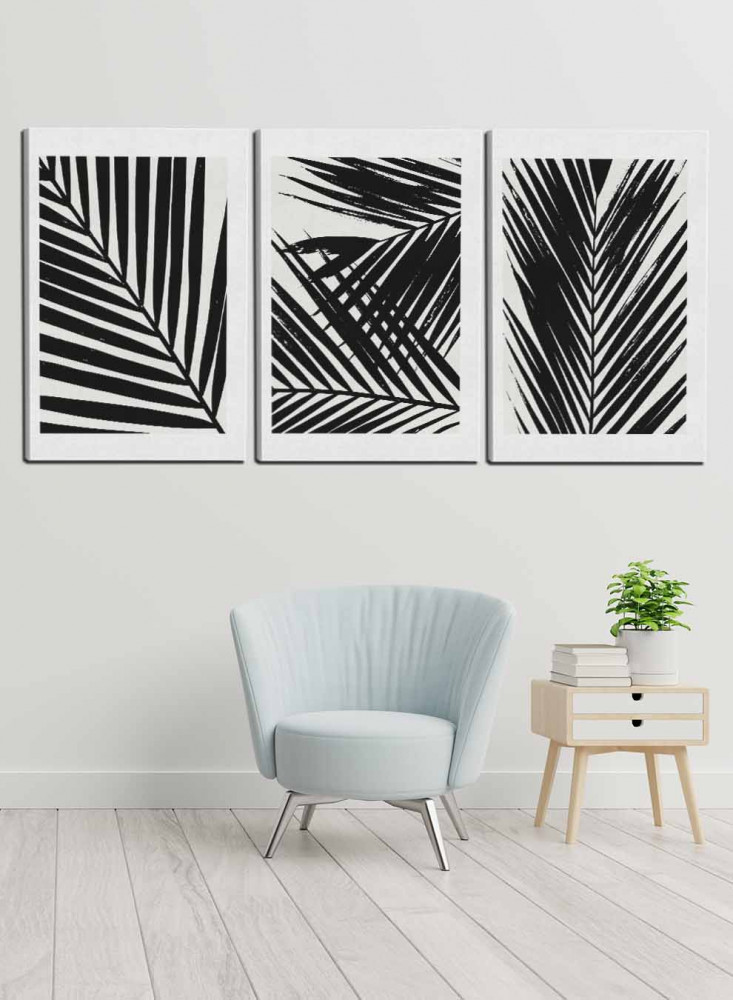 طقم من ٣ لوحات كانفاس على إطار خشبي، تصميم أوراق النخيل، للمنزل، غرفة المعيشة، المكتب، الديكور
