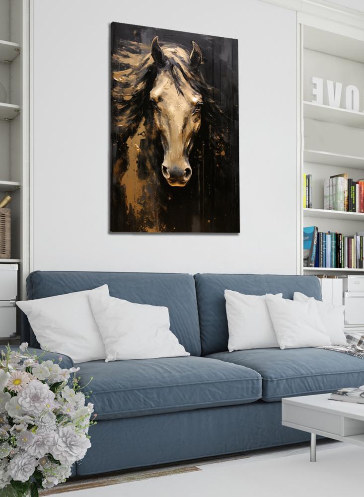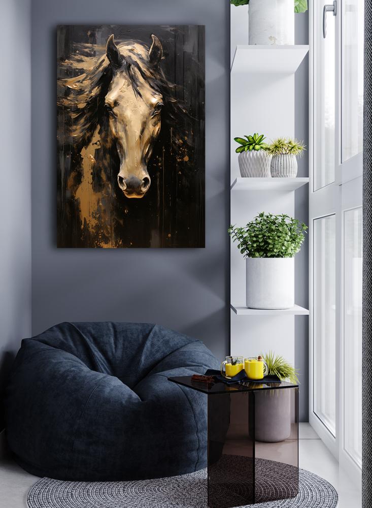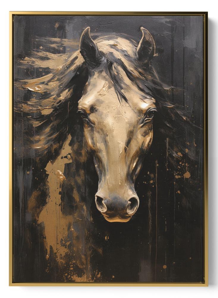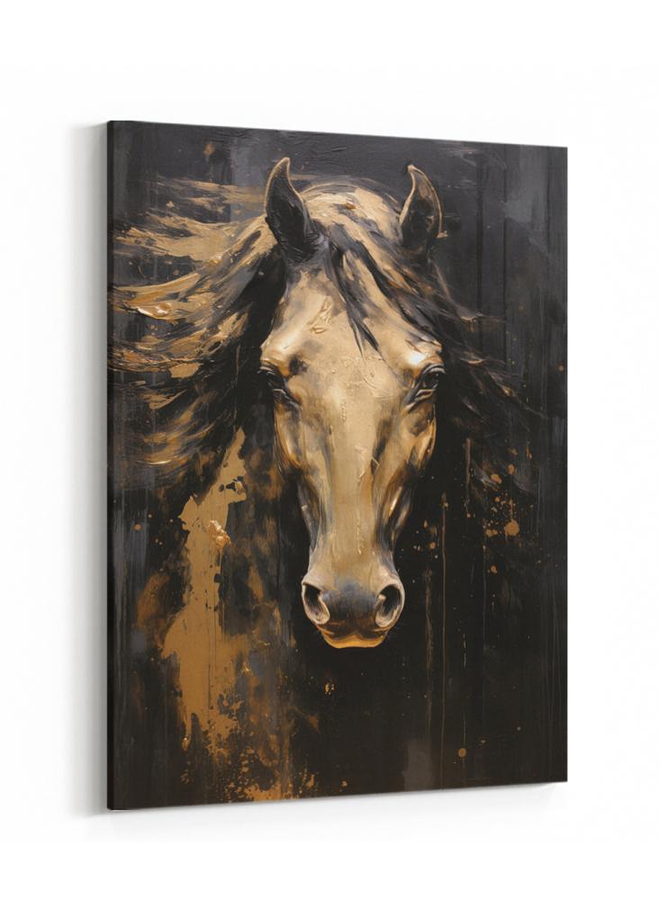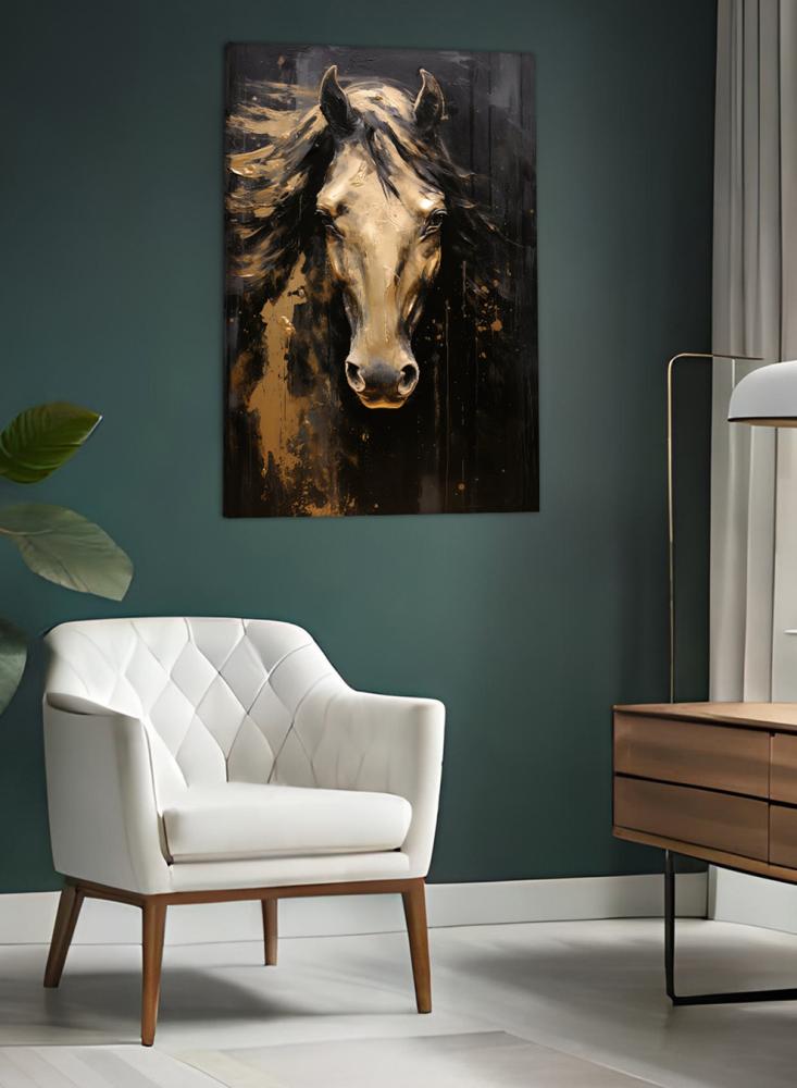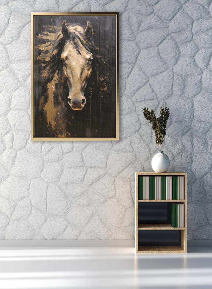 لوحة كانفاس على إطار خشبي بتصميم حصان بخلفية داكنة