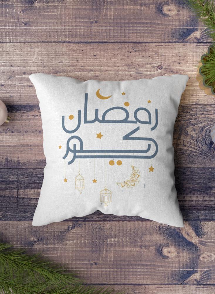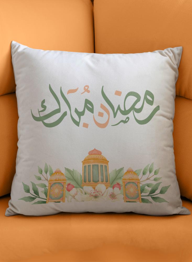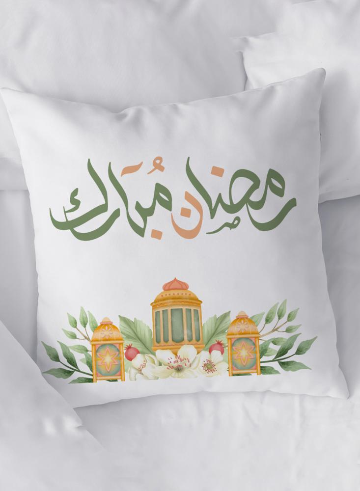 غطاء وسادة من البوليستر بتصميم رمضان مبارك مع ورود وفوانيس رمضان