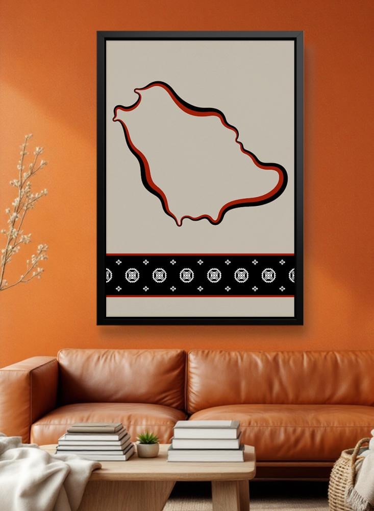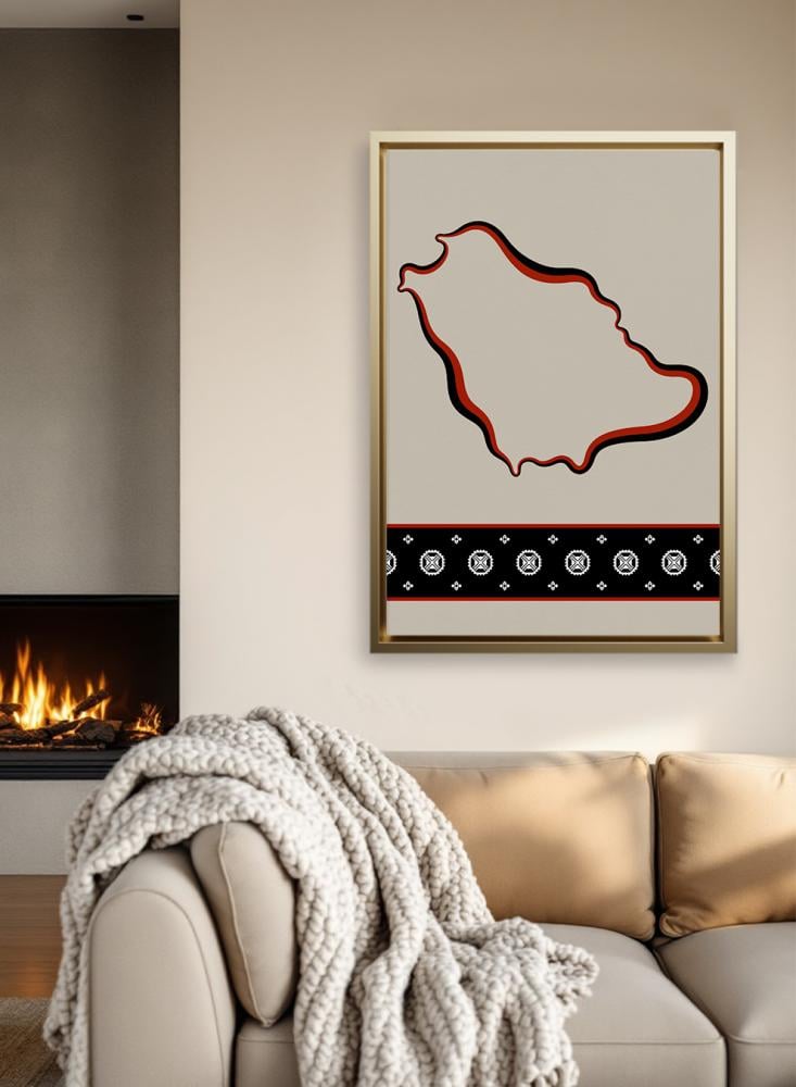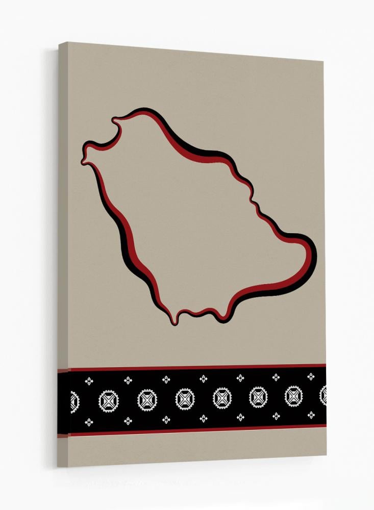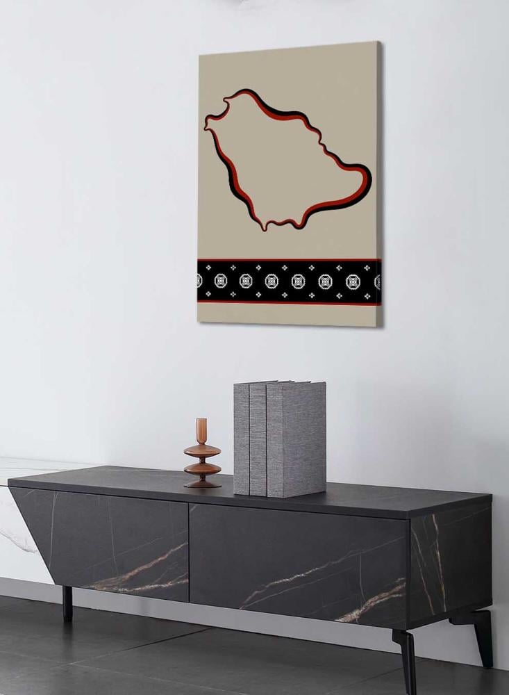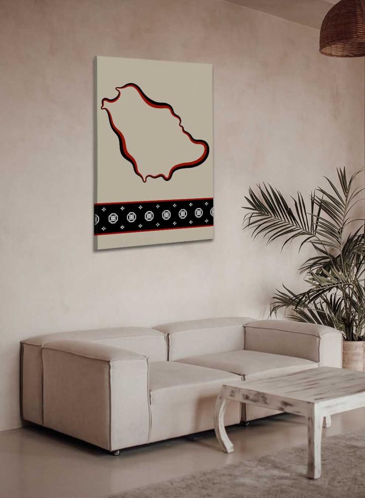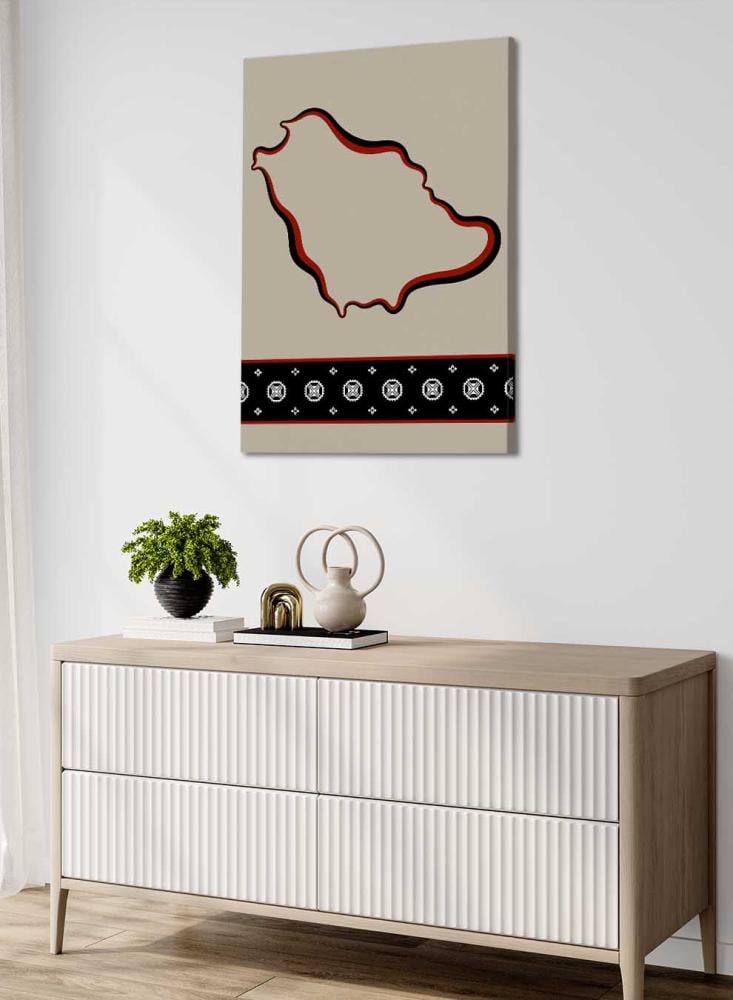 لوحة كانفاس على إطار خشبي تجسّد خريطة المملكة بتصميم مستوحى من الطابع السعودي