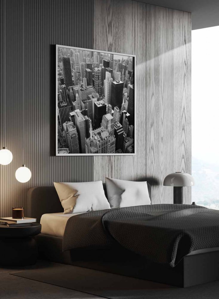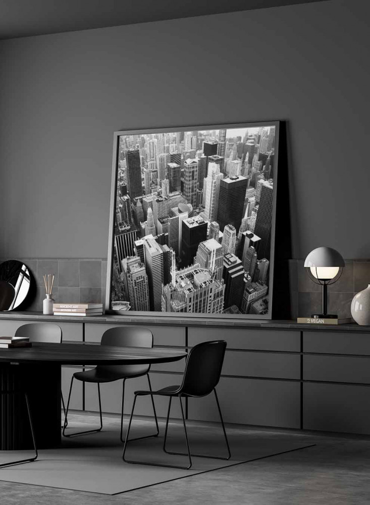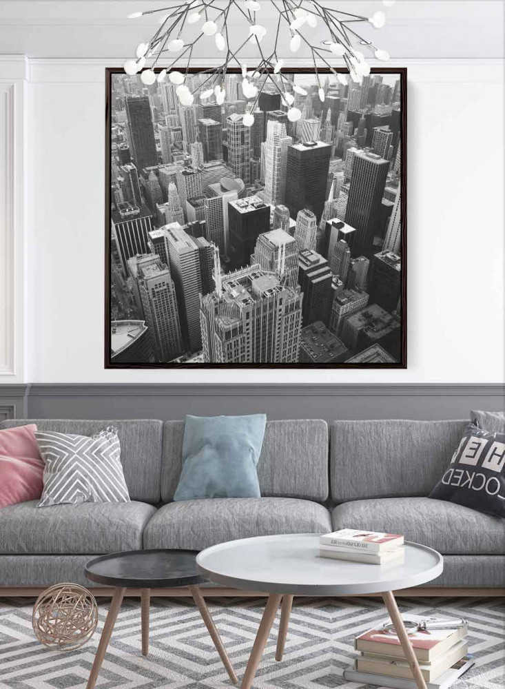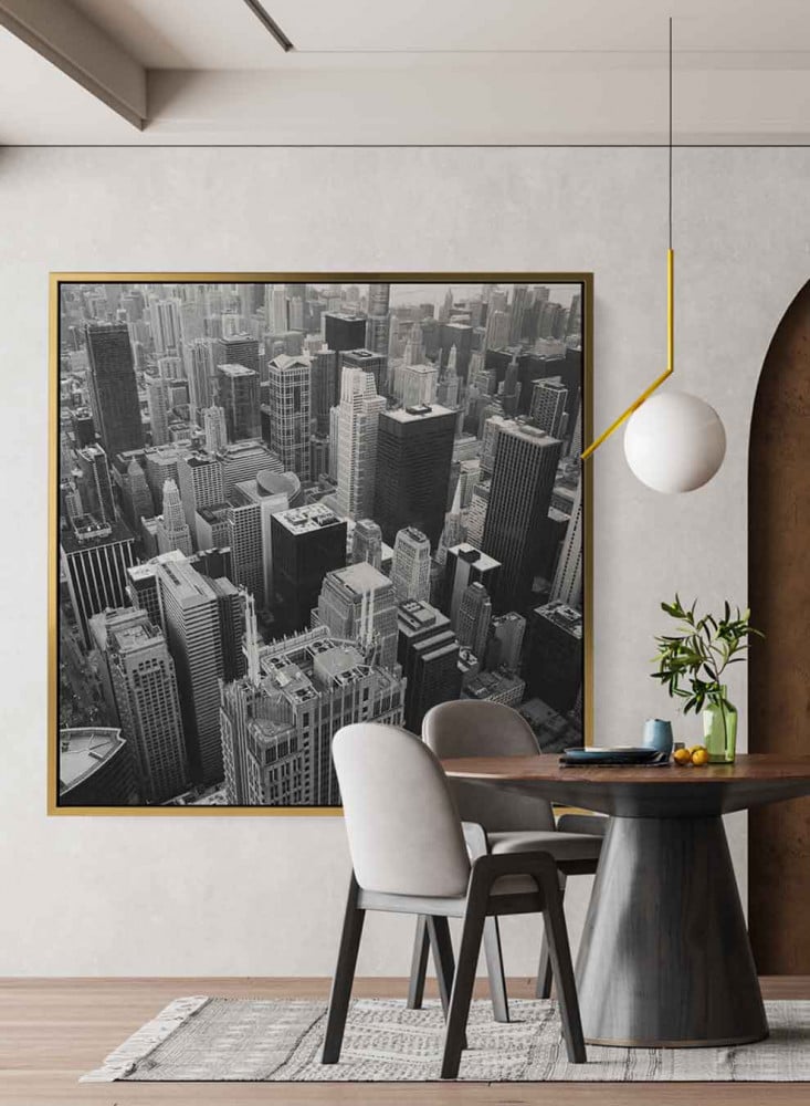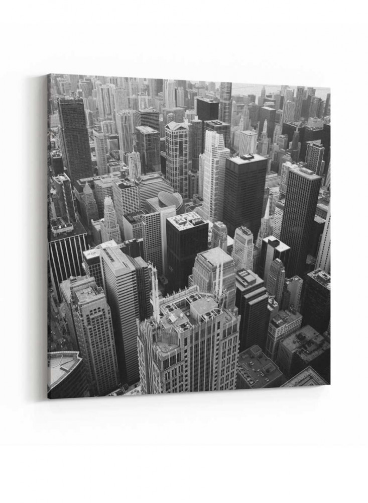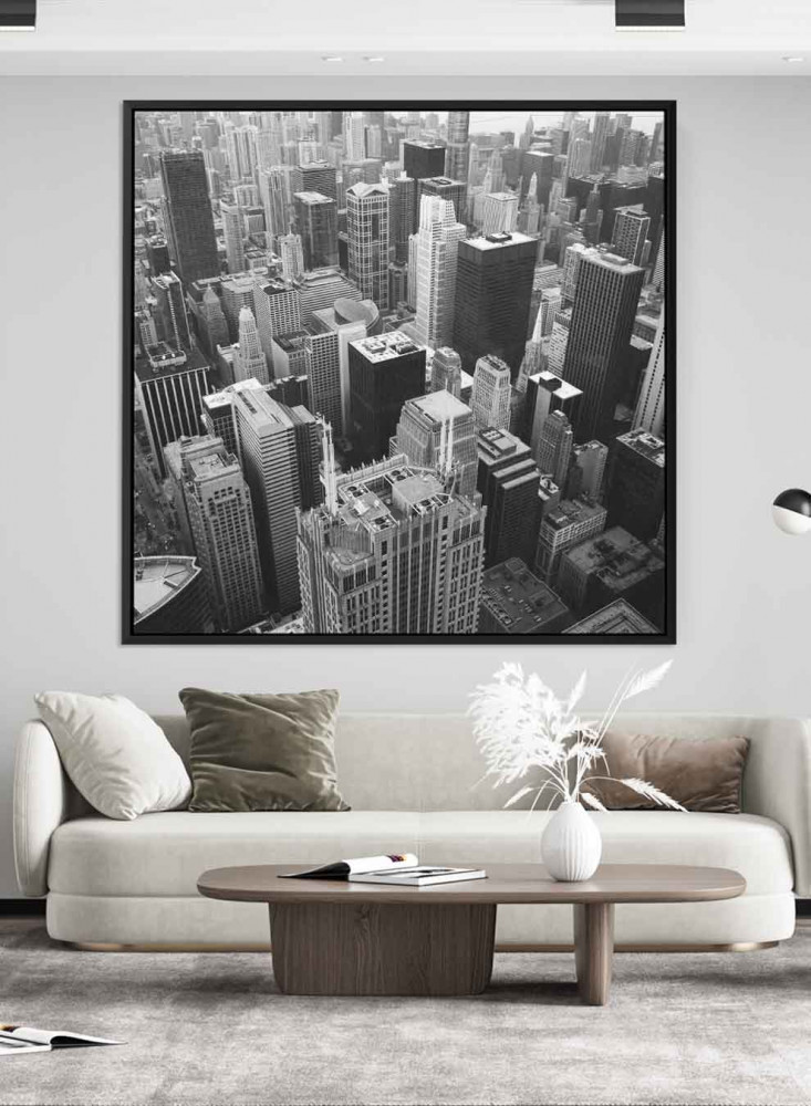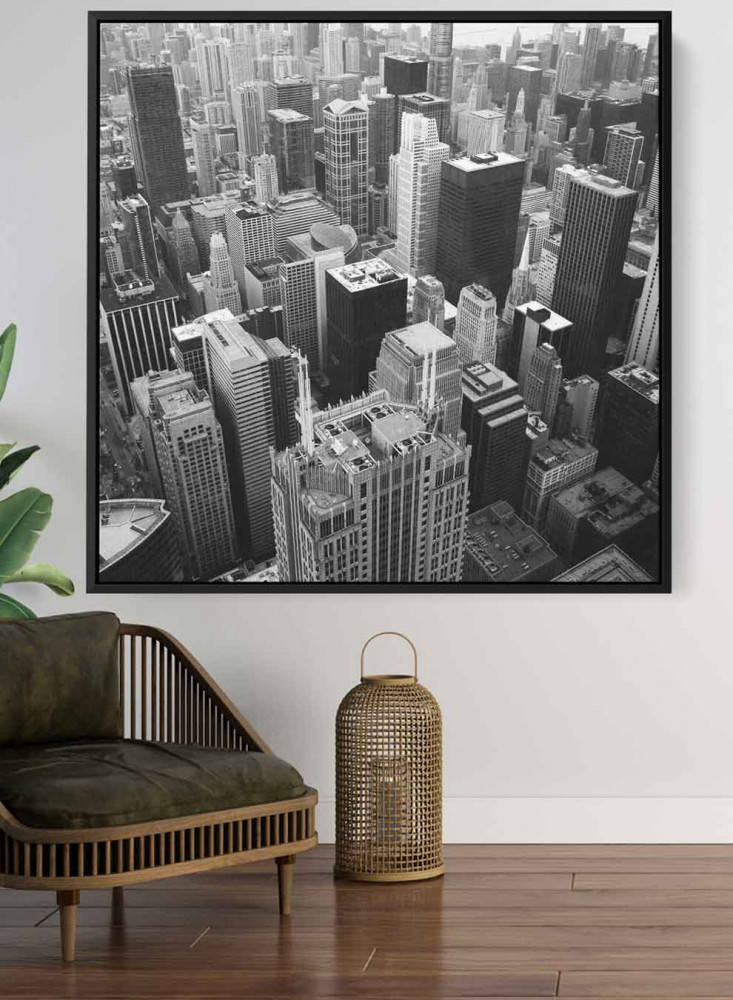 لوحة كانفاس مربع على إطار خشبي، تصميم مشهد عالى للمدينة ، للمنزل، غرفة المعيشة، المكتب، الديكور