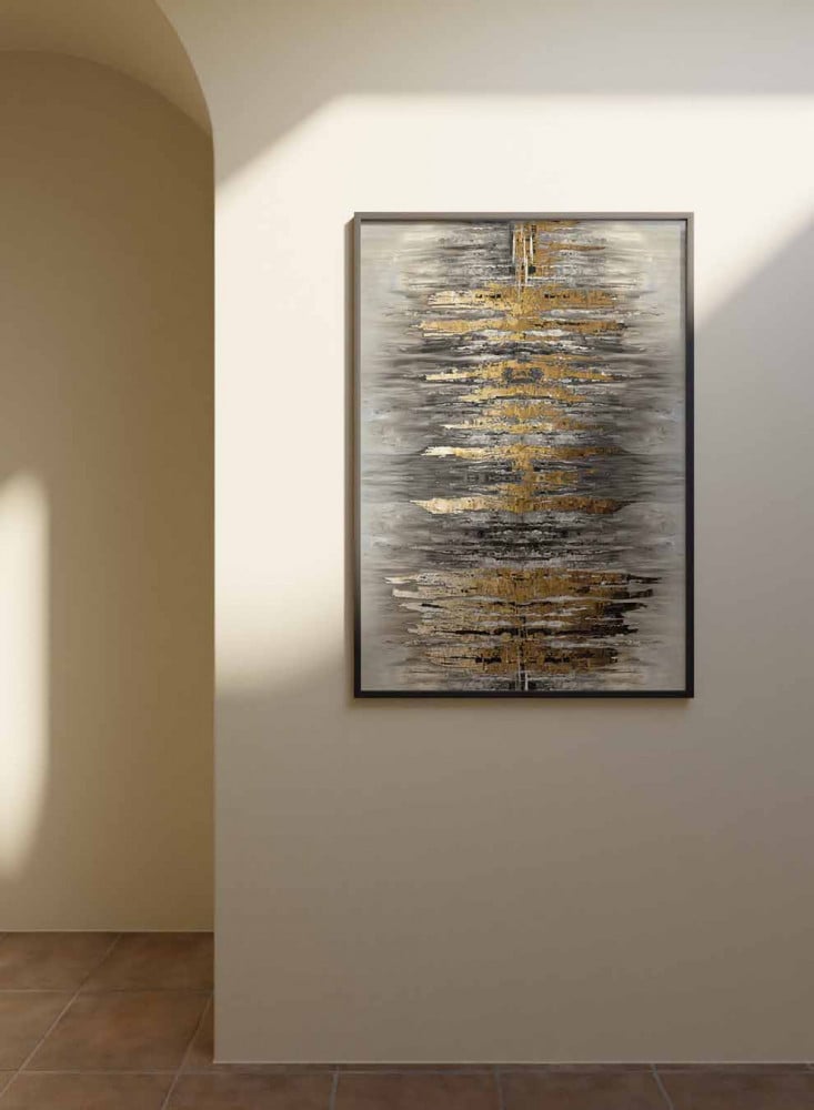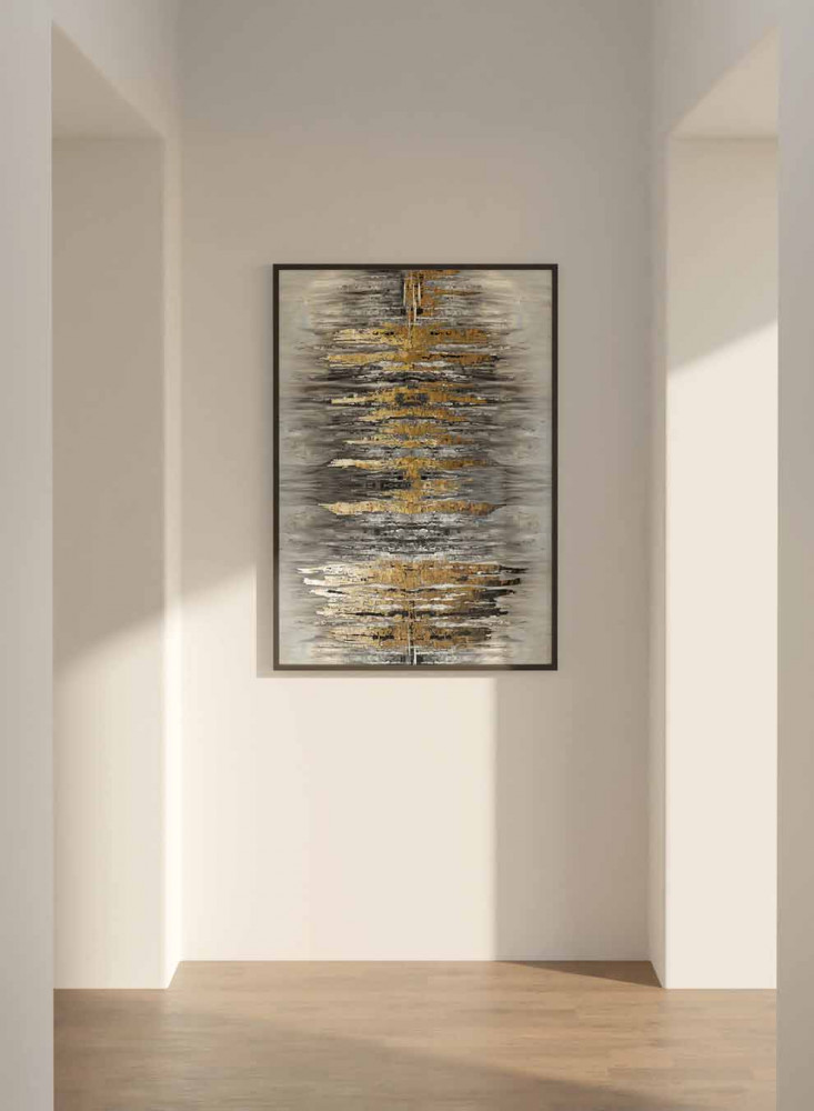- ممدودة بإحكام فوق إطارات خشبية عريضة، مما يضمن أن الكانفاس مشدود وغير متعرج.