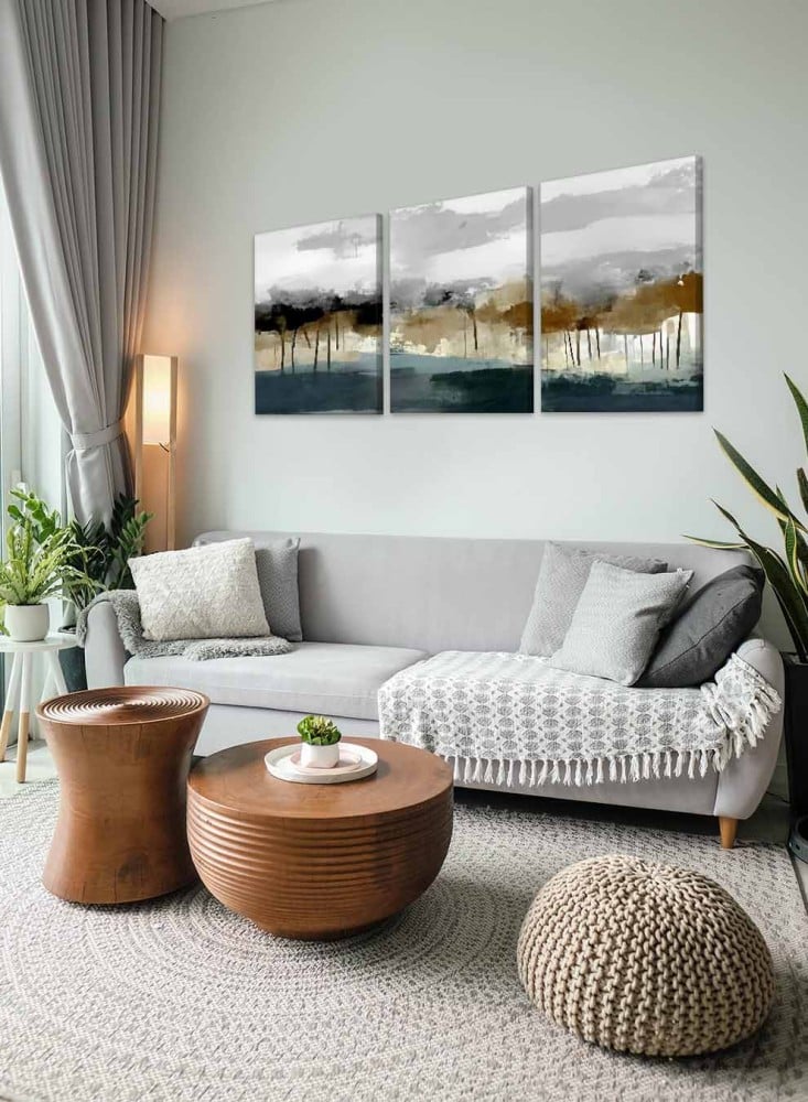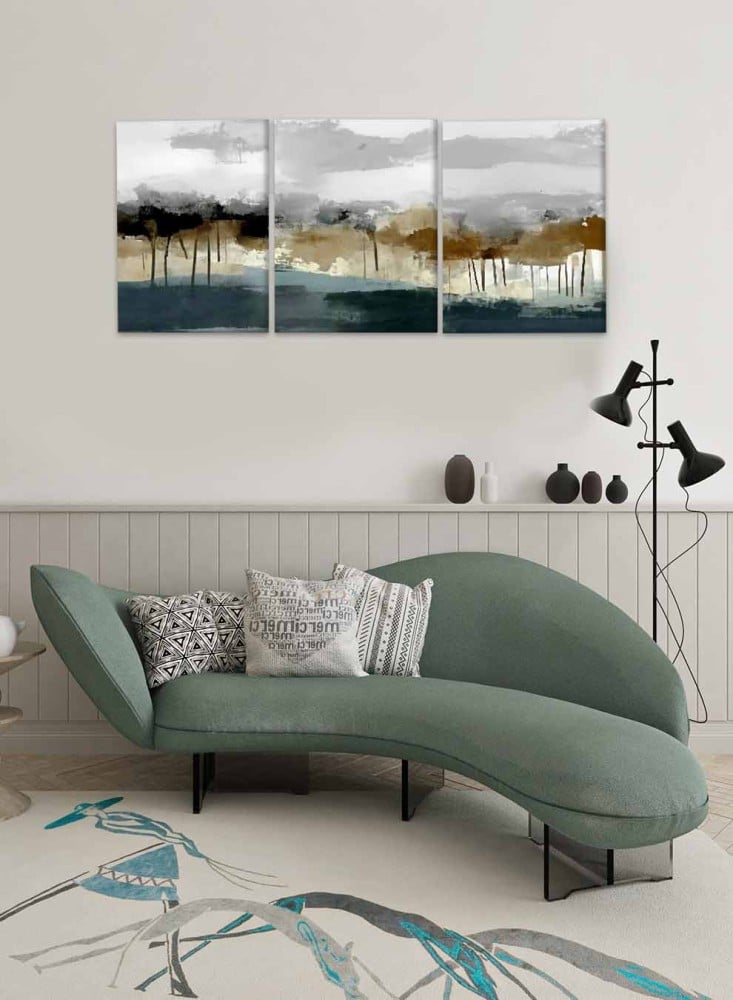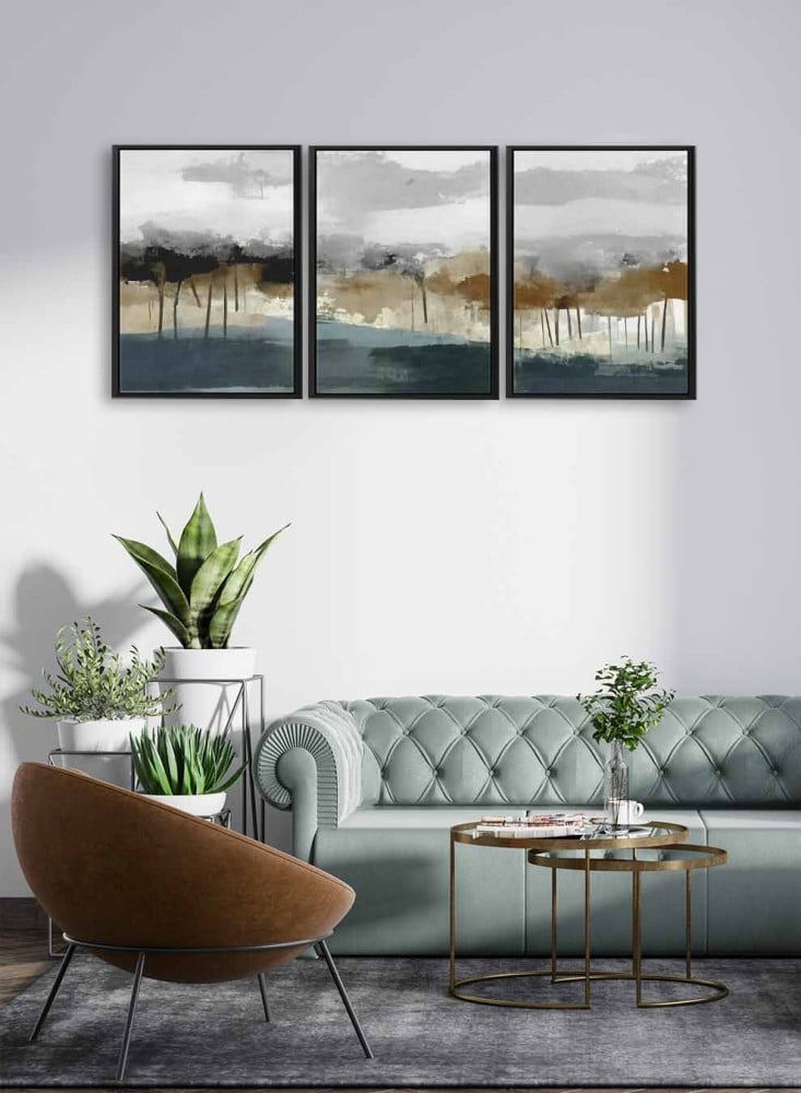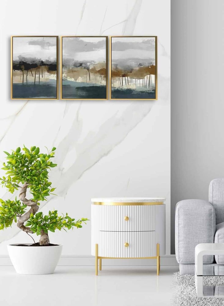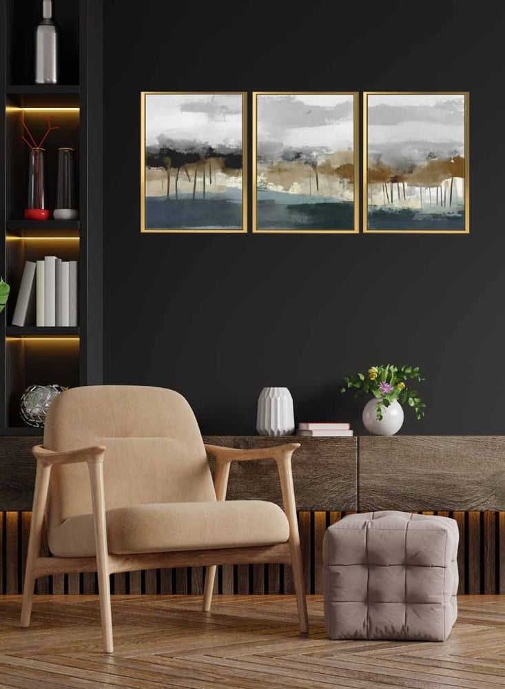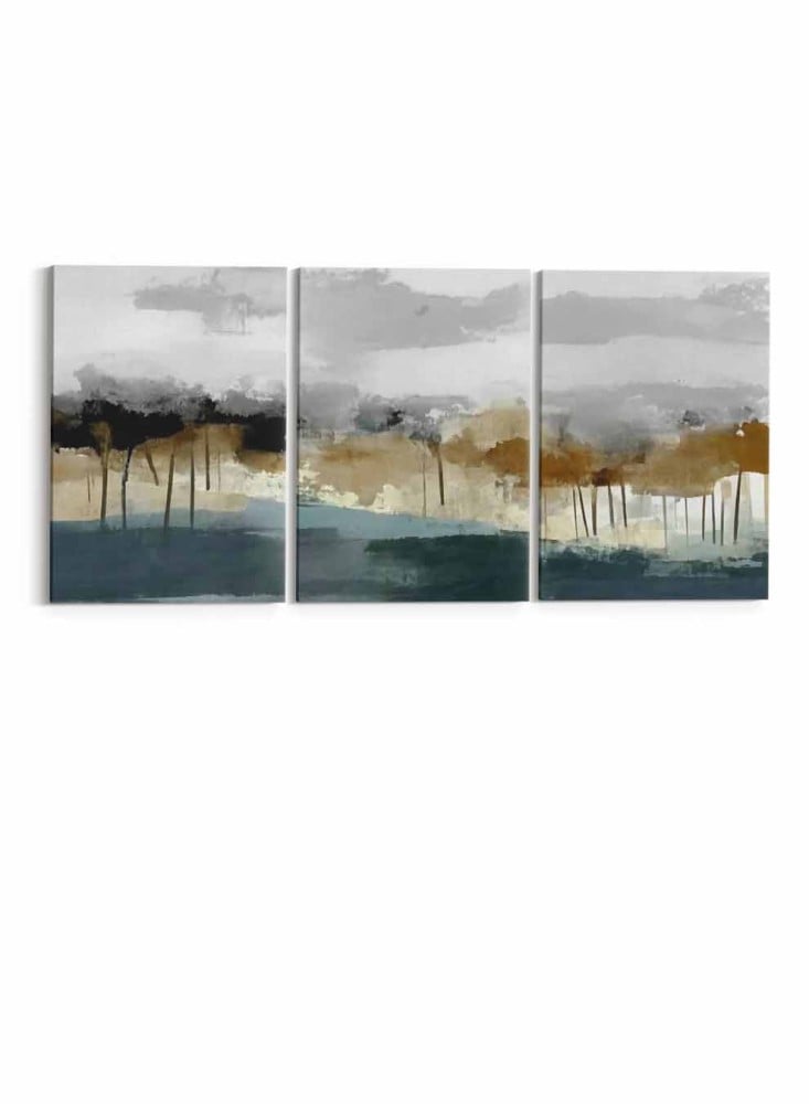 طقم من ٣ لوحات كانفاس على إطار خشبي بتصميم فن تجريدي