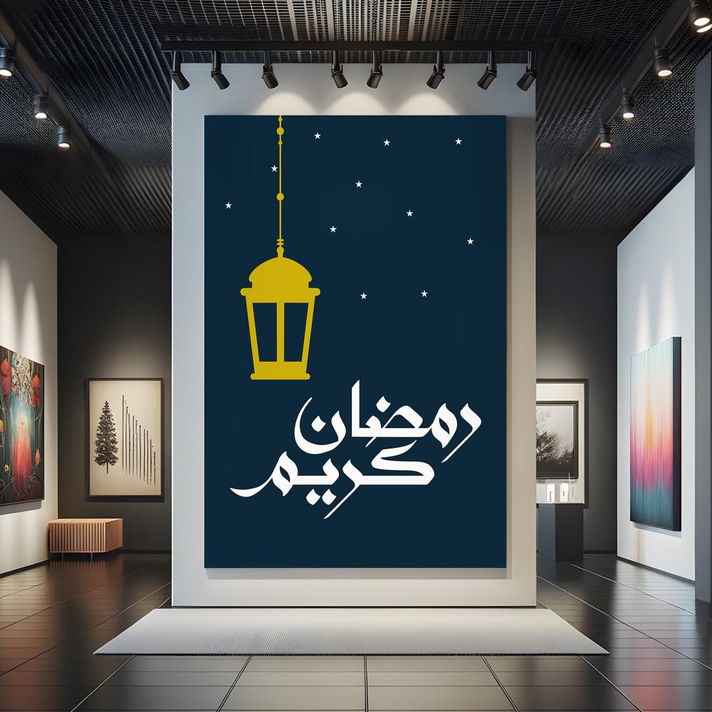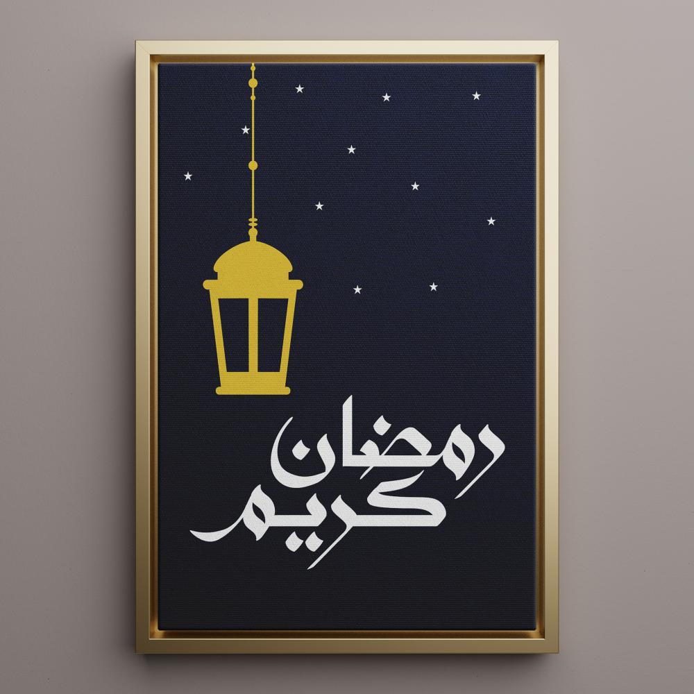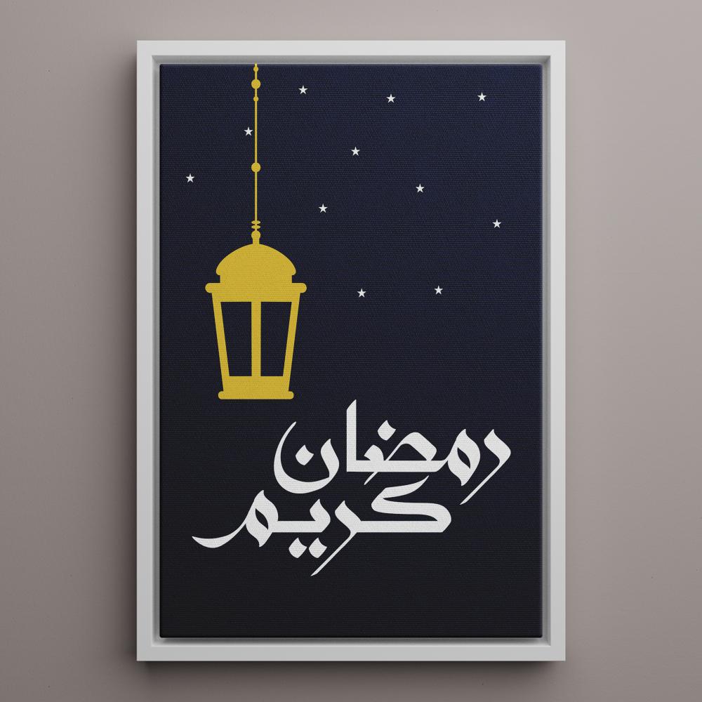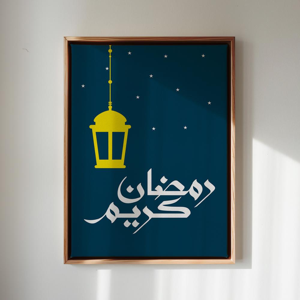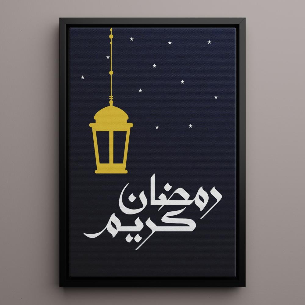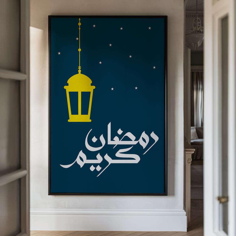 - تأتي لوحه فنيه عن رمضان بخلفية زرقاء مع نجوم مضيئة بها.