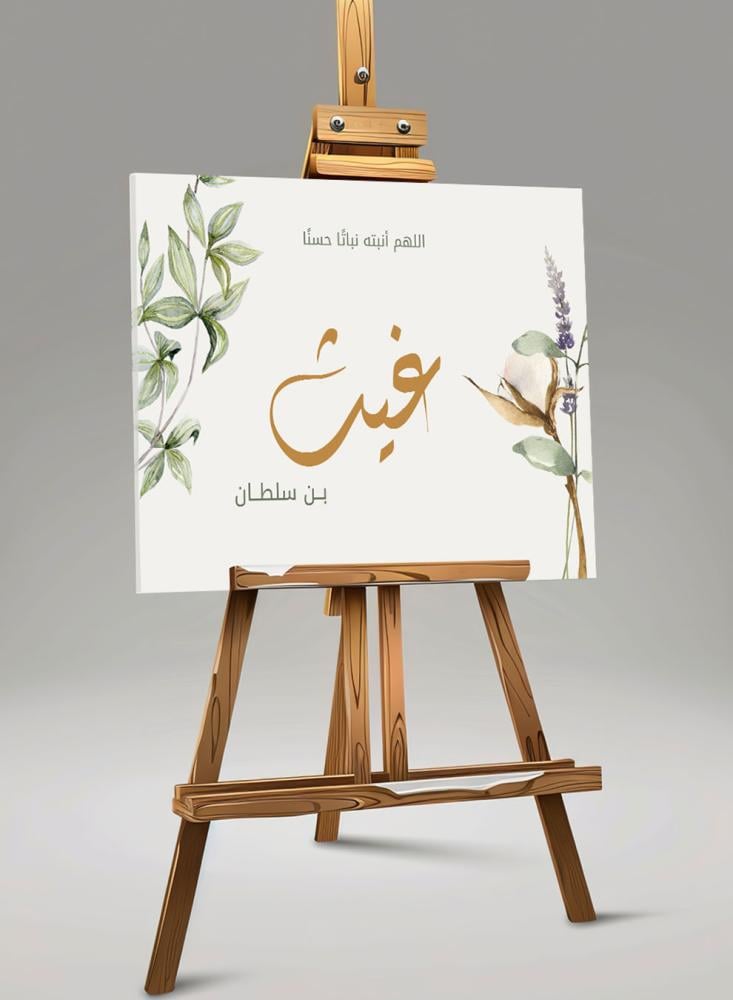 • يمكن طلب مقاسات مخصصة أو تزويد المصمم بمعلومات شخصية، مثل اسم المولود أو شعار العائلة، ليتم طباعة اللوحة بما يناسب المناسبة الخاصة.