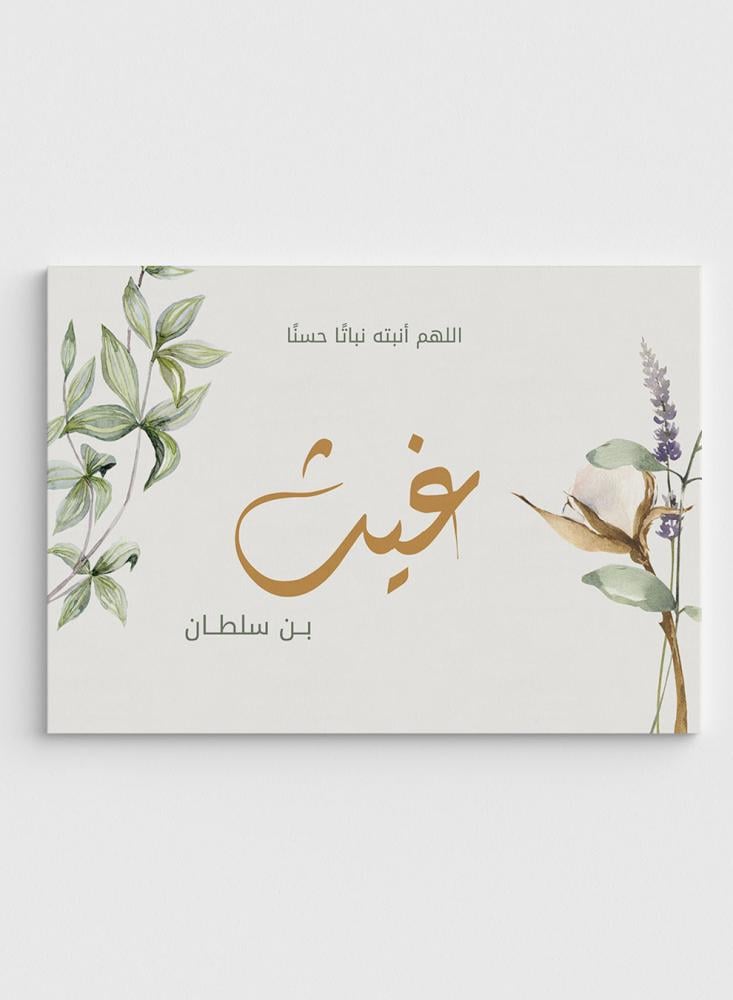 لوحة كانفاس استقبال مولود بتصميم أوراق نباتية ودعاء اللهم أنبته نباتًا حسنًا