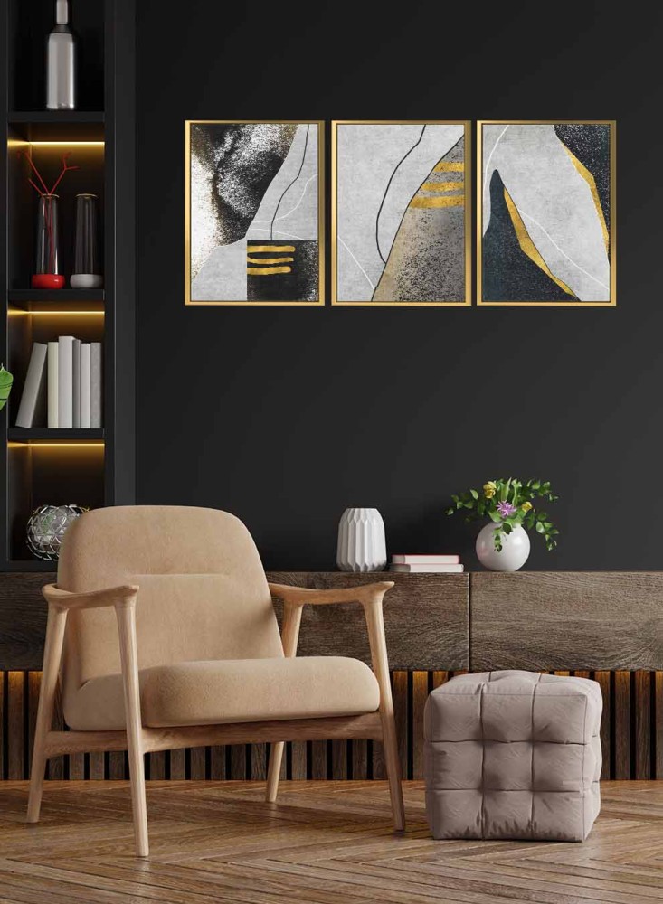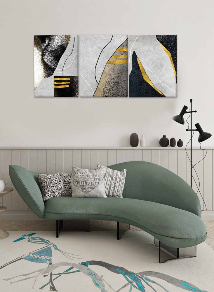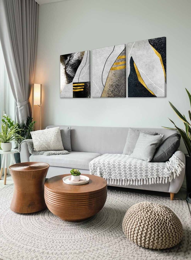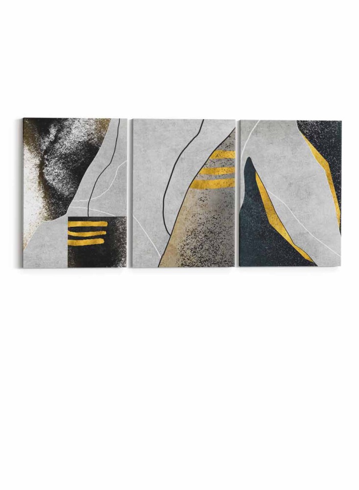 طقم من ٣ لوحات كانفاس على إطار خشبي بتصميم فن تجريدي