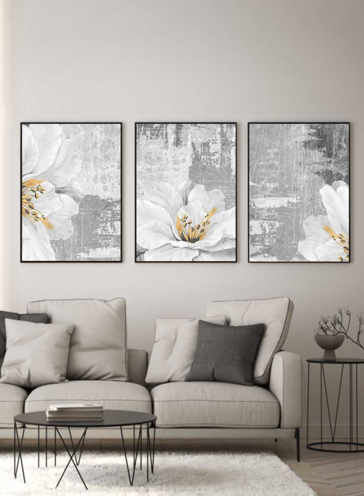 لا يكتمل ديكور منزلك سوى باختيار لوحة خشبية جدارية تتلاءم مع الديكورات الاخرى بمنزلك، باعتبارنا علامة تجارية رائدة في هذا المجال، سنقدم لكم طقم من ثلاث لوحات كانفاس بتصميم زهور على خلفية تجريدية رائعة، ما الذي تنتظره اطلع أدناه لمزيد من التفاصيل: