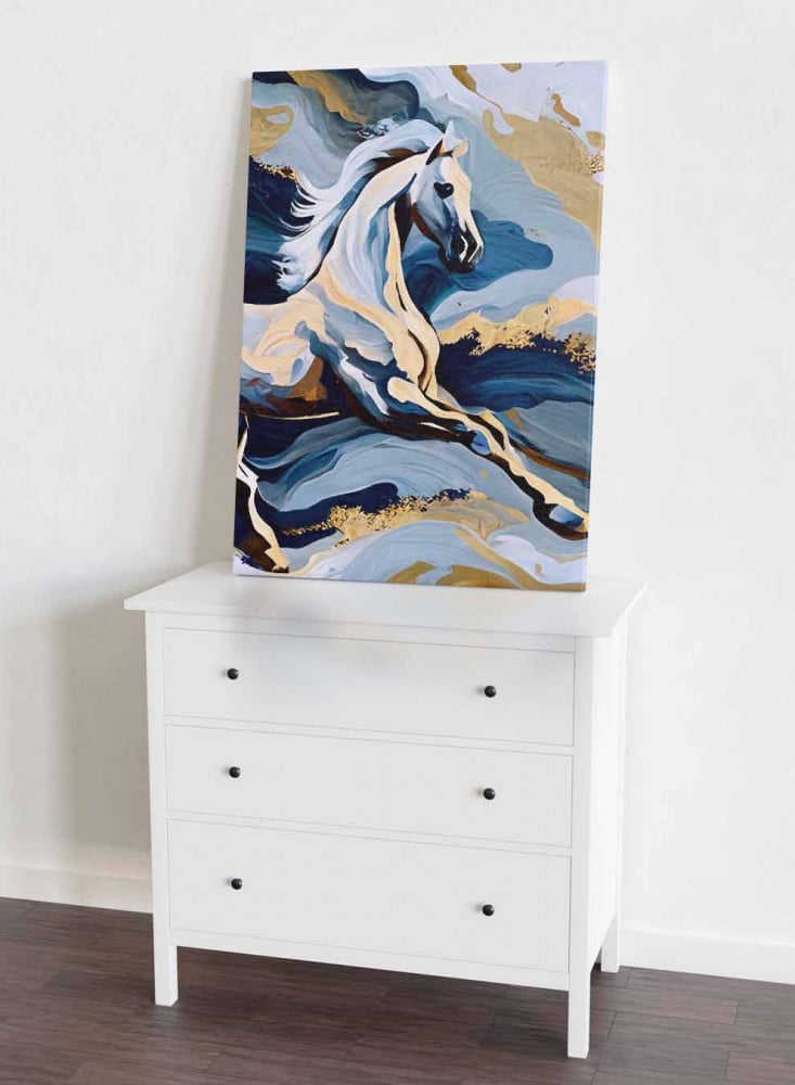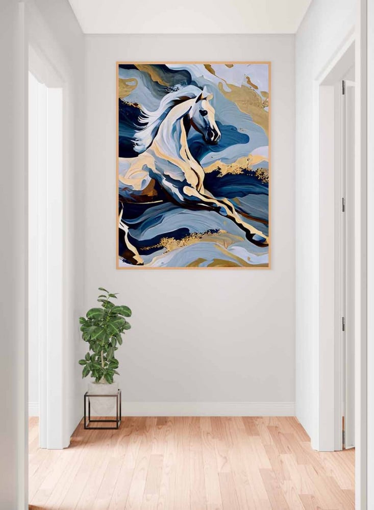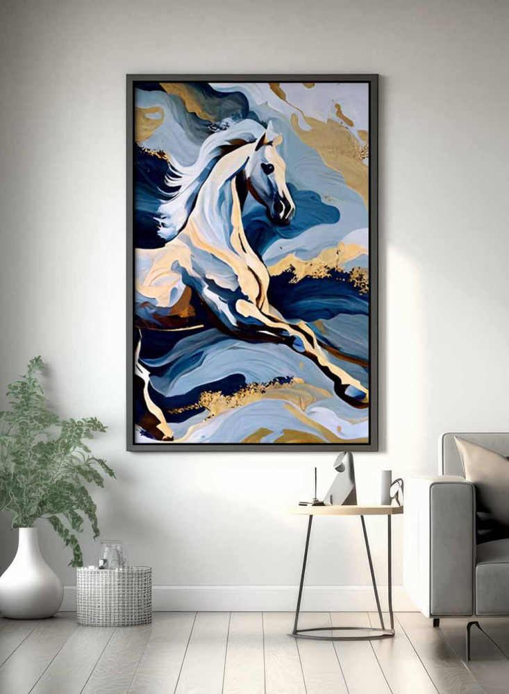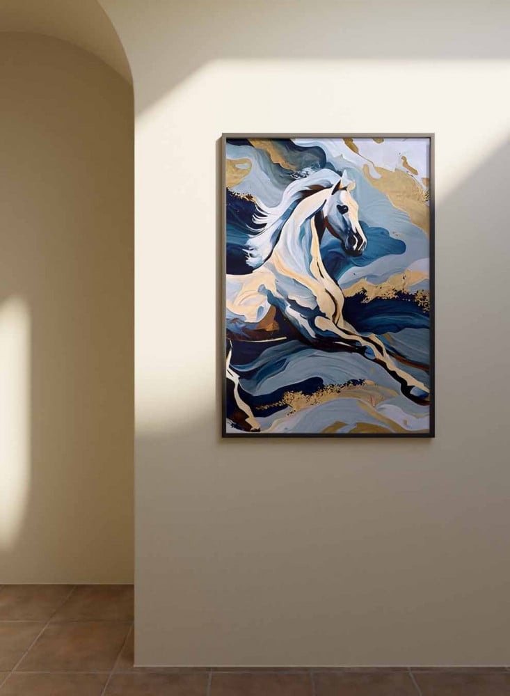 - تأتي اللوحة بتصميم فن تجريدى لحصان جامح.