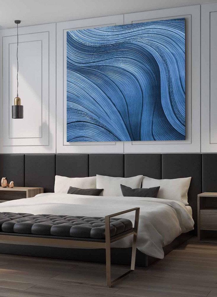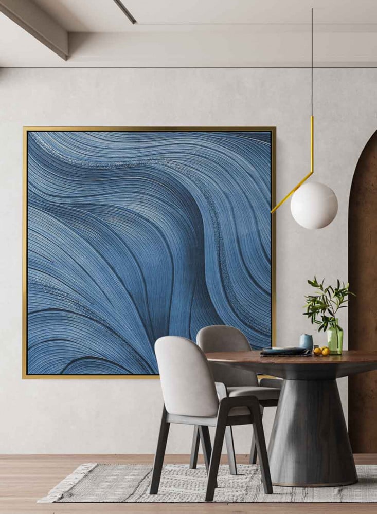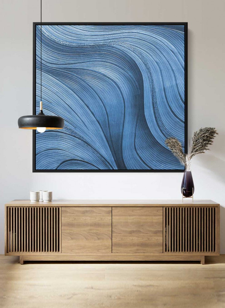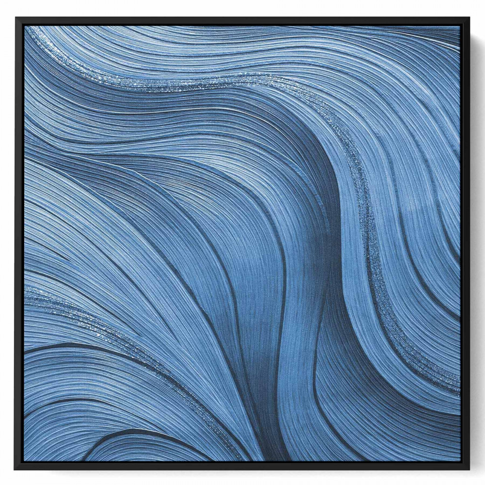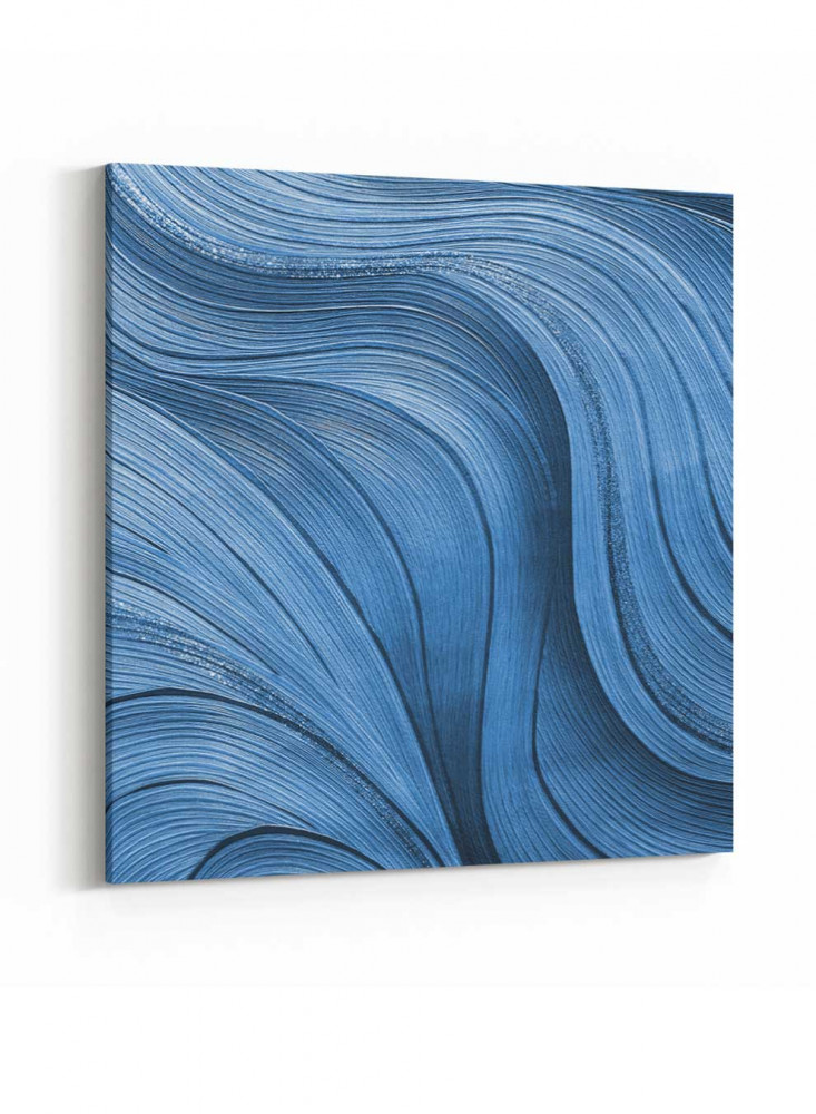 لوحة كانفاس مربع على إطار خشبي، تصميم فن تجريدي لموج ازرق، للمنزل، غرفة المعيشة، المكتب، الديكور