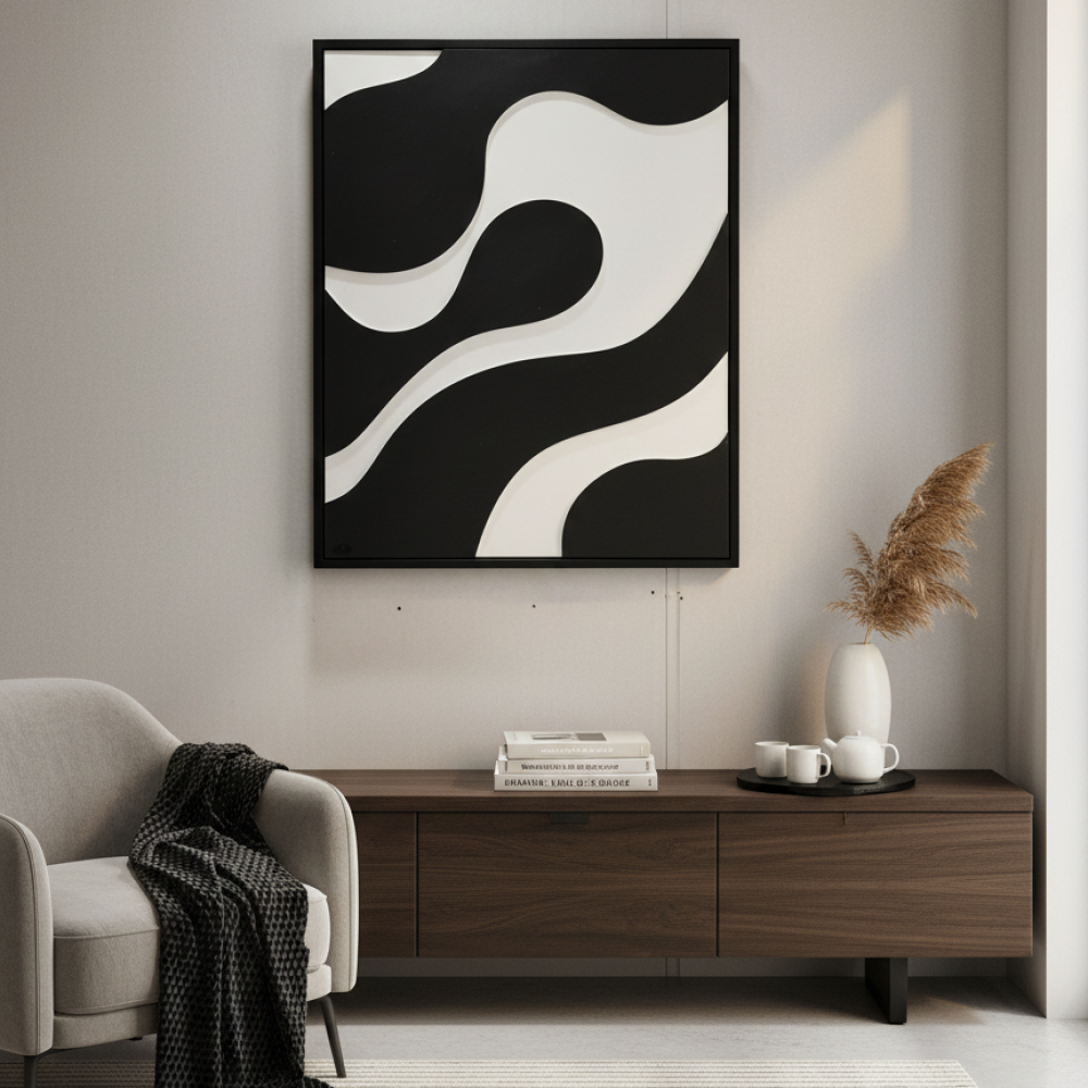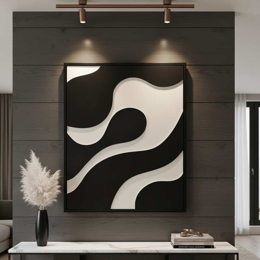 لوحة جدارية بارزة مصنوعة يدويا بتصميم عصري مع إطار أسود – ٨٠×١٠٠ سم