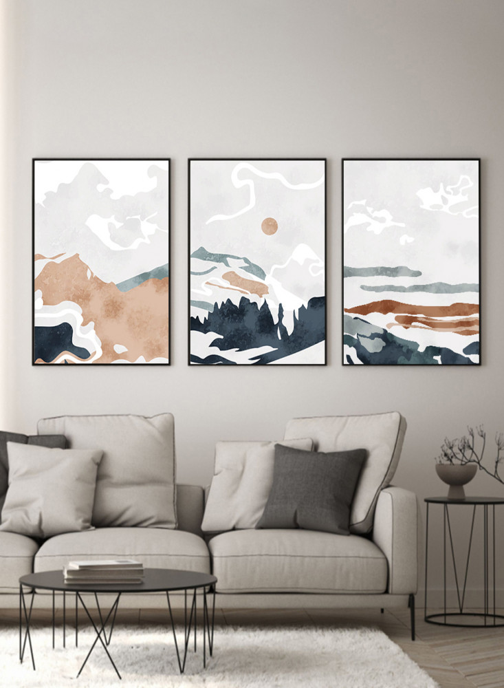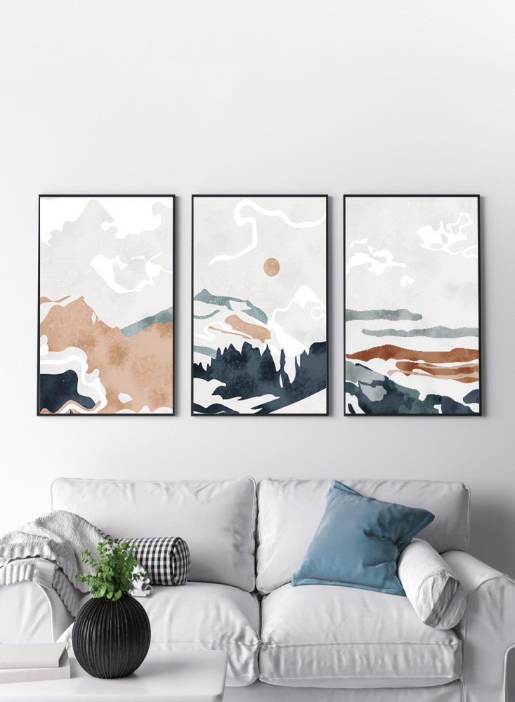 طقم من ٣ لوحات كانفاس على إطار خشبي، تصميم رسم تجريدي، للمنزل، غرفة المعيشة، المكتب، الديكور