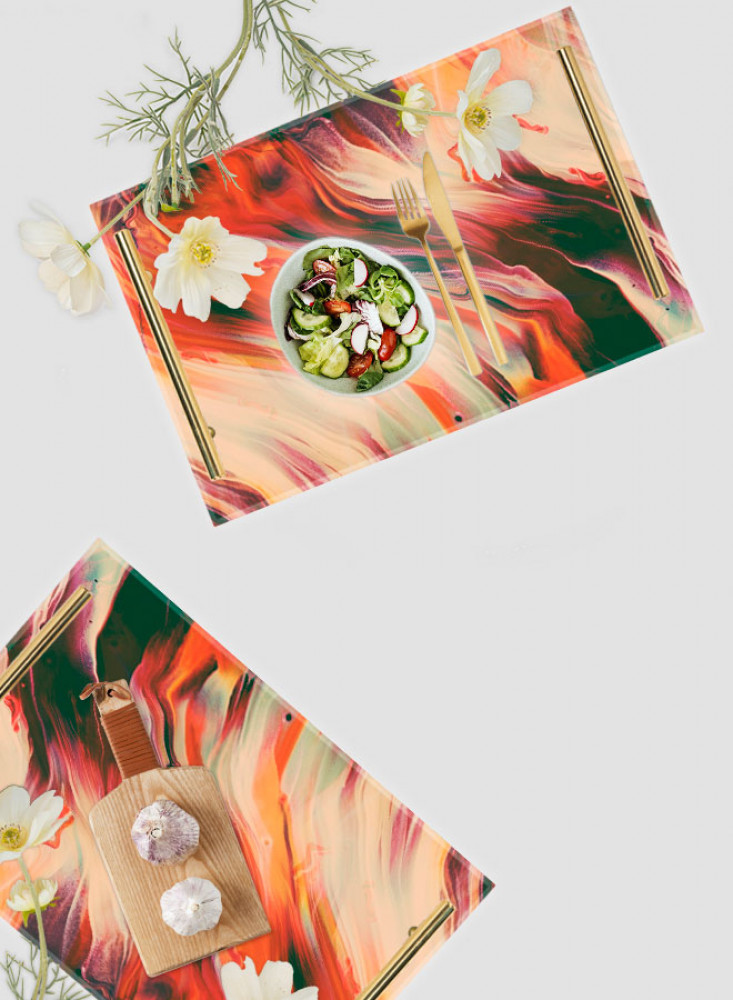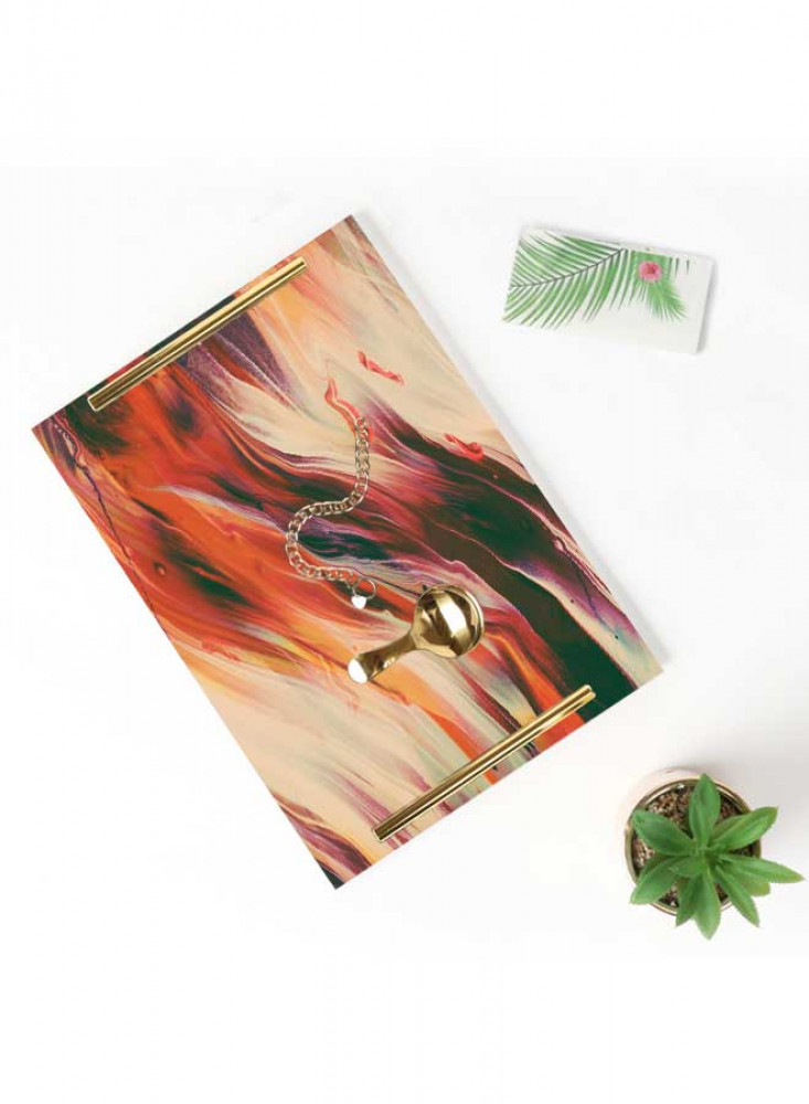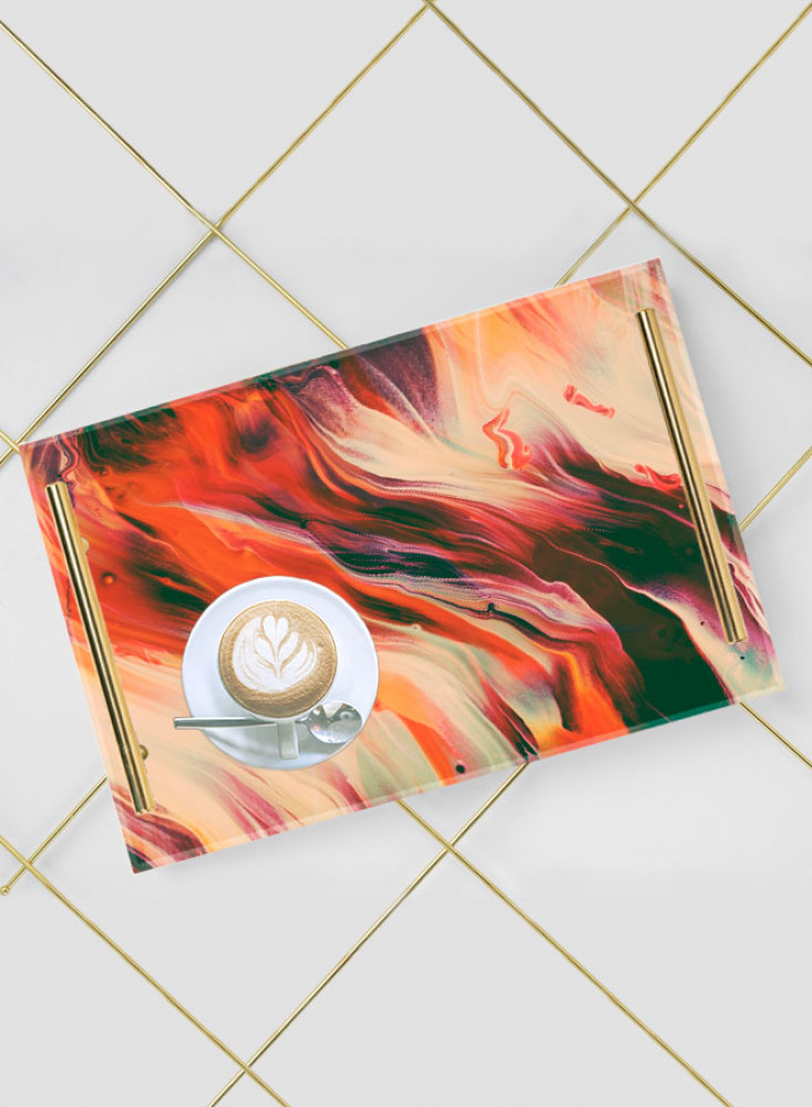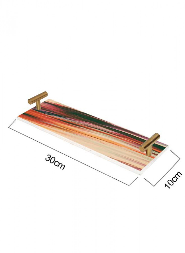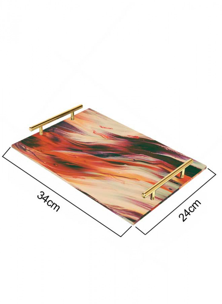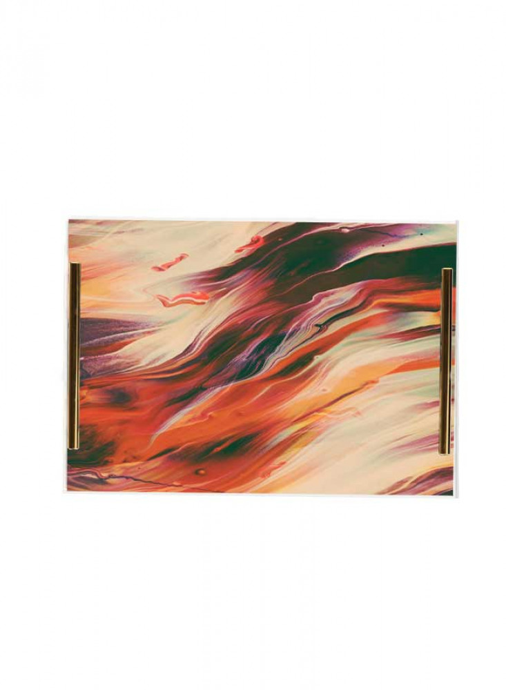 صينية تقديم مصنوعة من الأكريليك مزخرفة بتصميم بالألوان المائية بمقابض معدنية ذهبية اللون