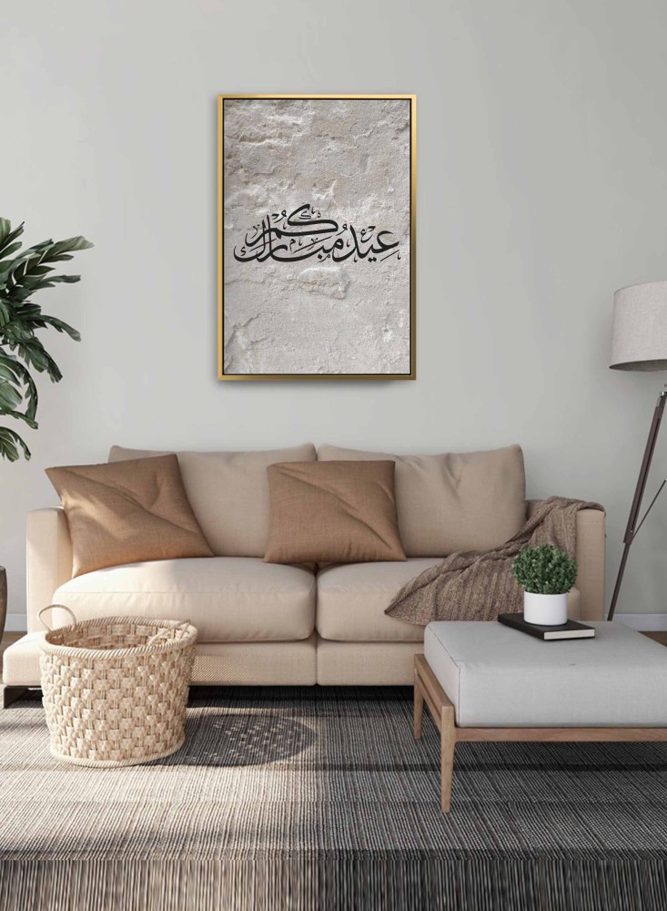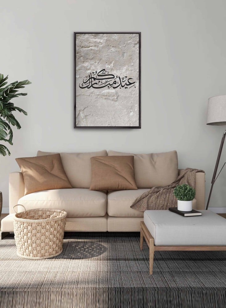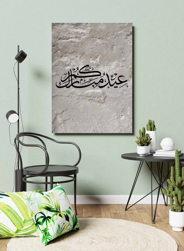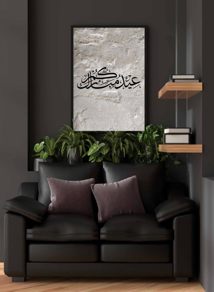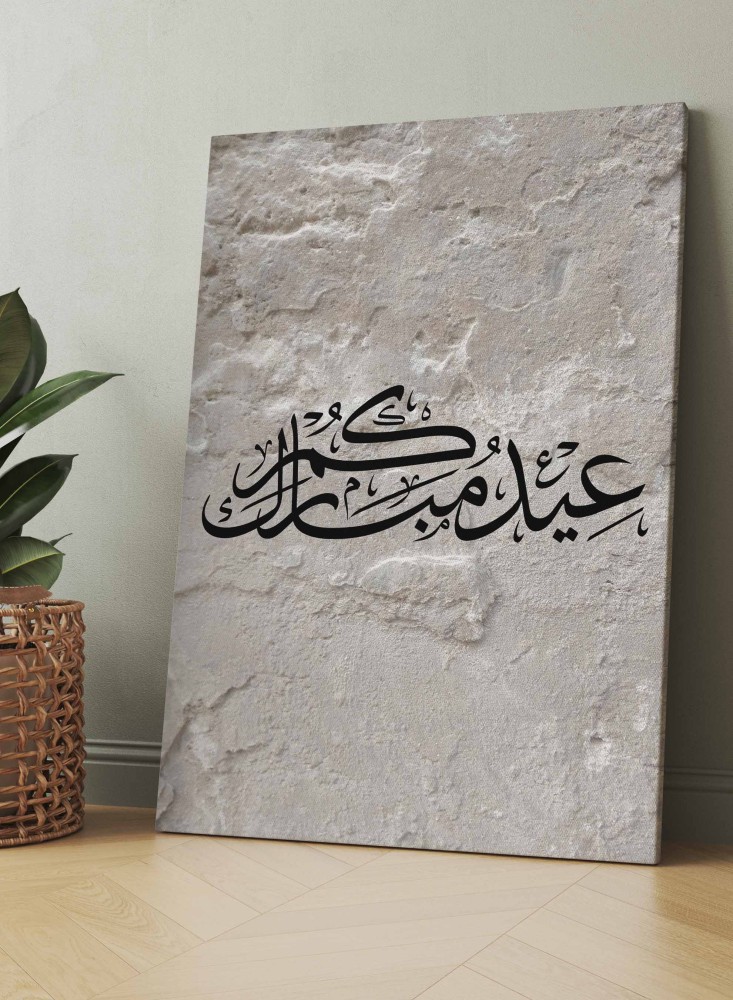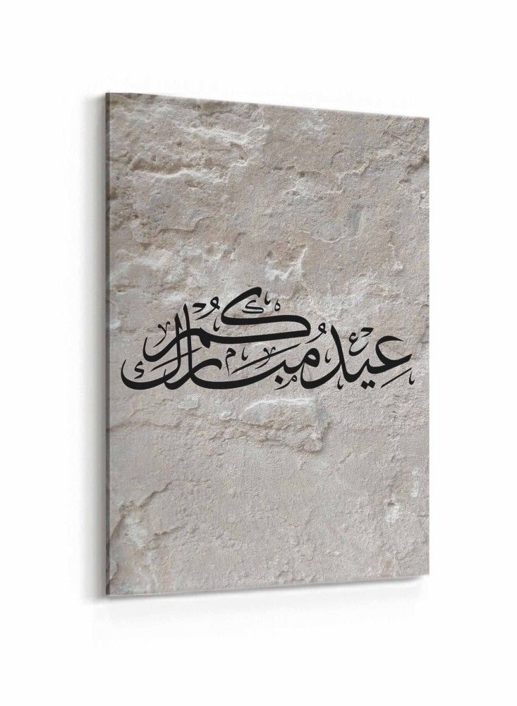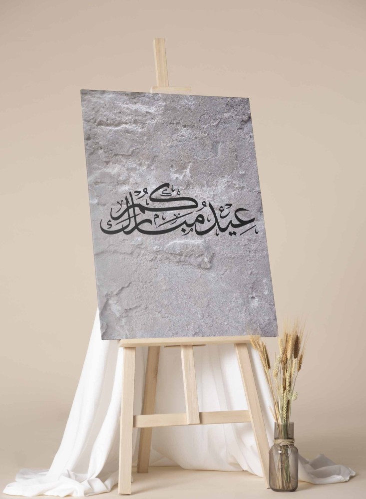 لوحة كانفاس على إطار خشبي بتصميم عيدكم مبارك على خلفية صخرية