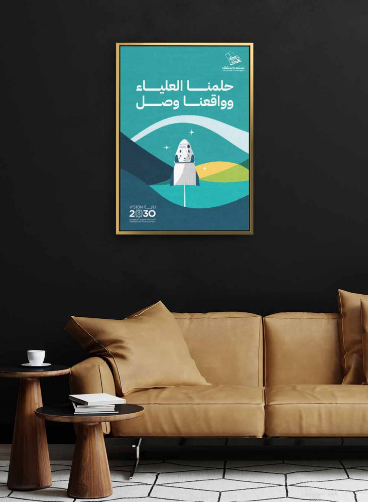 - لوحات فنيه لليوم الوطني من تصميم فريد لعبارة "السعودية نحو الفضاء"