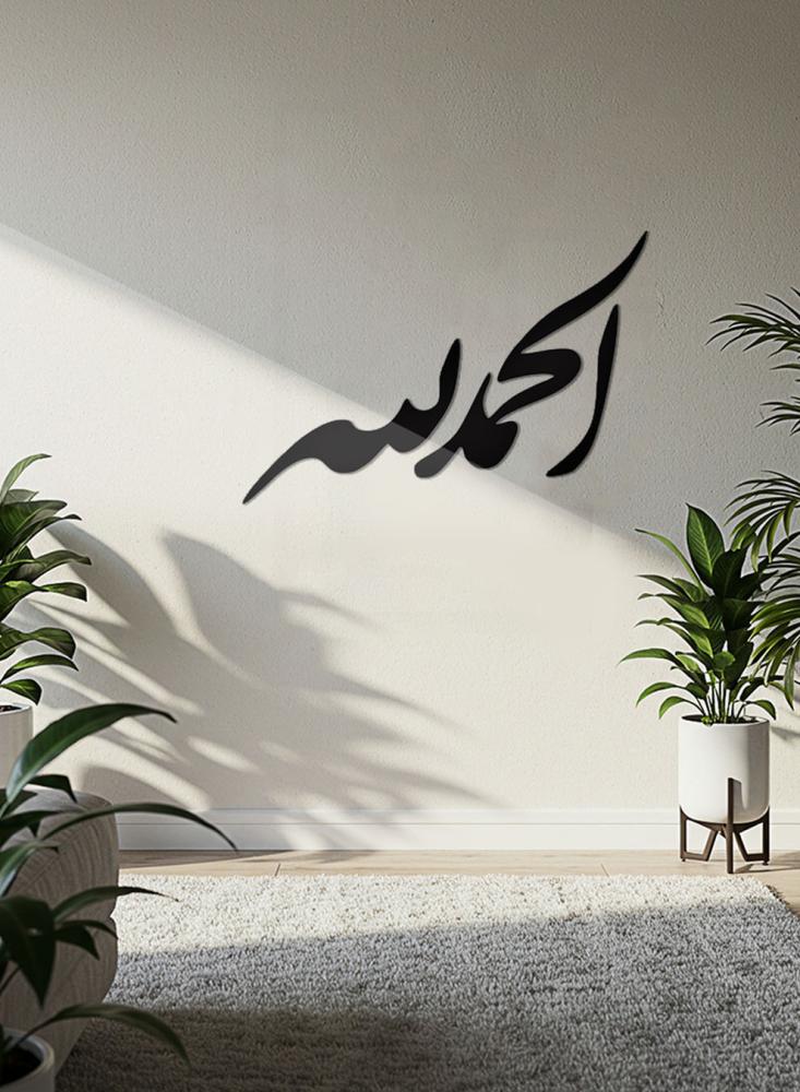 أضف لمسة من الأناقة الروحية إلى منزلك مع هذه اللوحة الجدارية المصنوعة من الأكريليك والمصممة على شكل الحمد لله بتقنية القطع بالليزر الدقيقة. تتميز بتصميم أنيق من الأكريليك الأسود بسماكة ٣ ملم بمظهراً راقياً يضفي على المكان طابعاً فريداً. مزوّدة بلاصق خلفي قوي لتثبيت سهل وآمن على الجدار دون الحاجة إلى أدوات أو حفر. تأتي هذه اللوحة بمقاس ٥٠ × ٣٣٫٧ سم. صنعت بفخر في المملكة العربية السعودية.