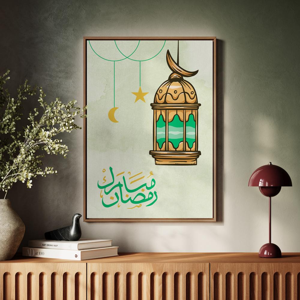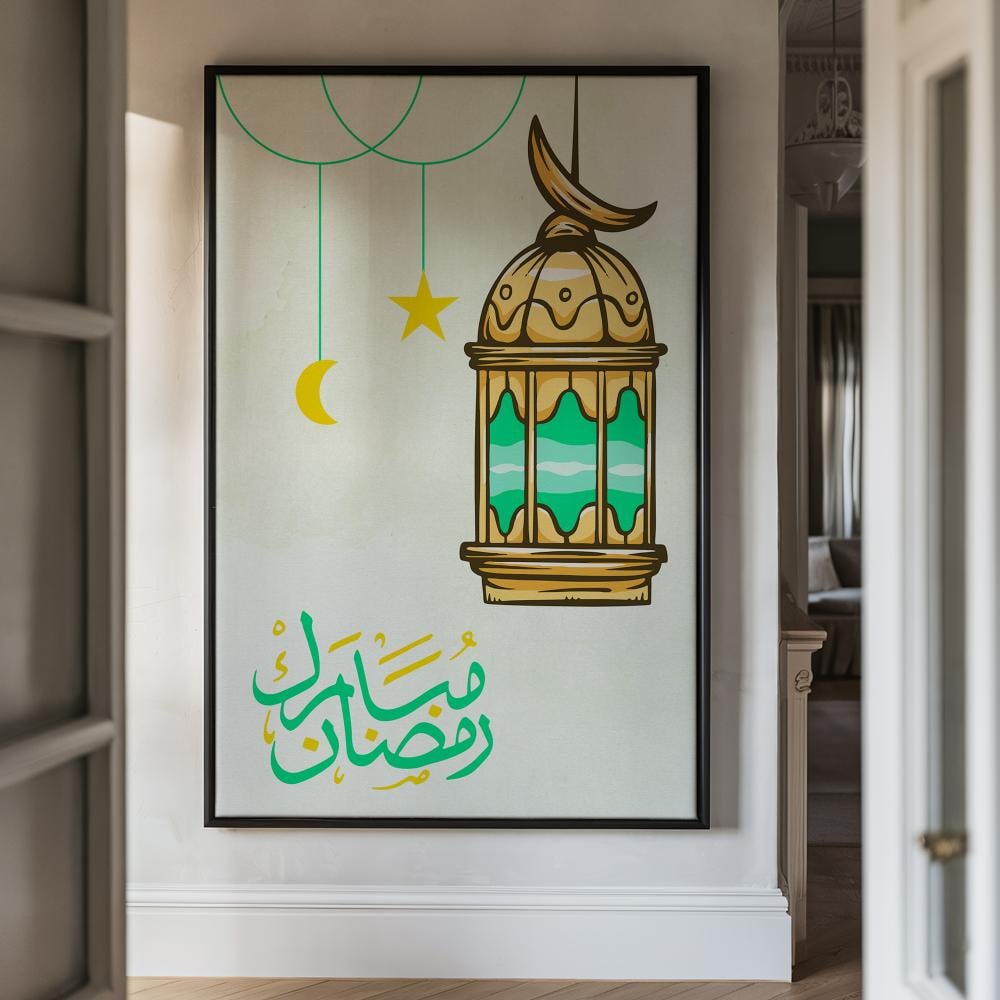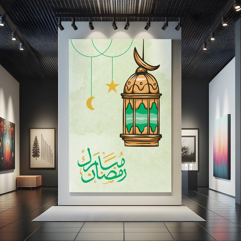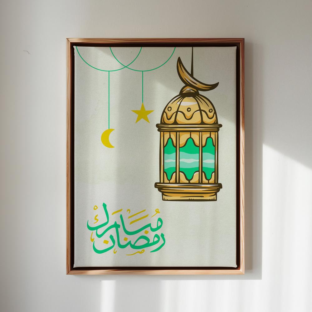 لوحة كانفاس على إطار خشبي بتصميم رضمان مبارك مع فانوس رمضان