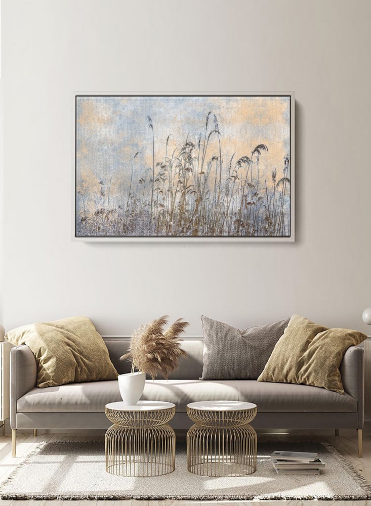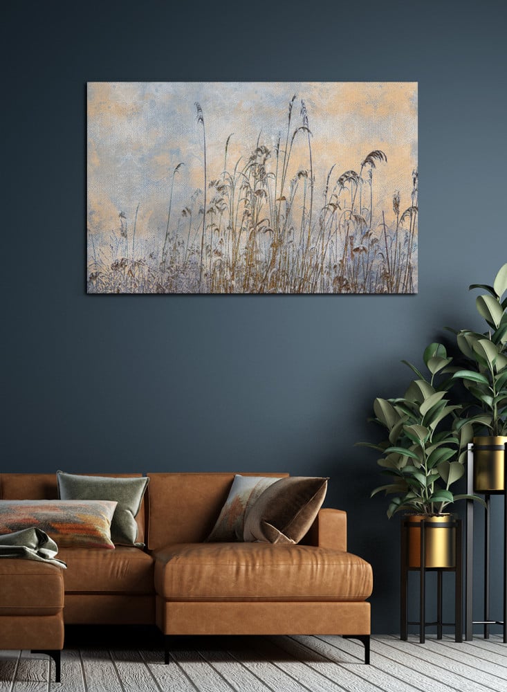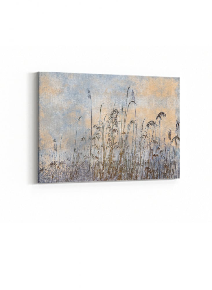 لوحة كانفاس على إطار خشبي، تصميم قصب مغطى بالثلج، بمنظر أفقي، للمنزل، غرفة المعيشة، المكتب، الديكور