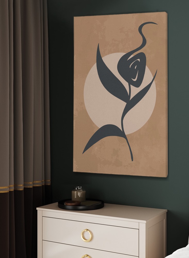 - لوحة كانفاس على إطار خشبي بتصميم فن تجريدي زهرة.