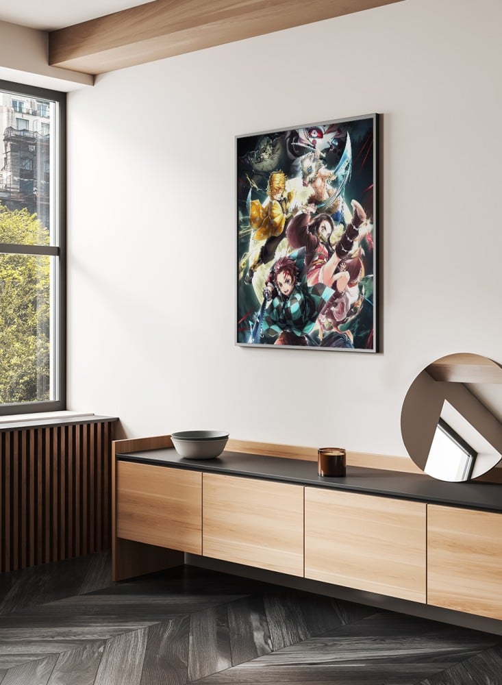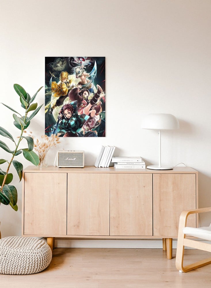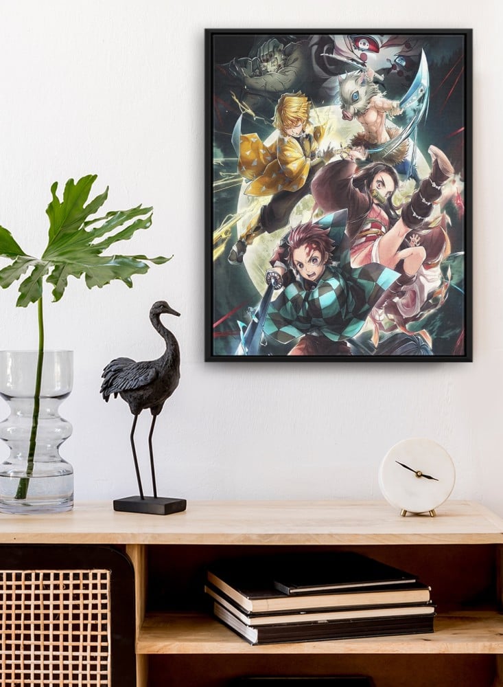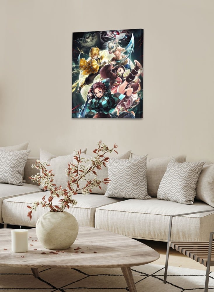 موقع لوحات جدارية لوحة يقدم تشكيلة واسعة من اللوحات ومن ضمنها لوحات الأنمي التي تنال إعجاب الكثير من محبي الأنمي. نرشح لك من بينها لوحة كانفاس أنمي بتصميم الشخصيات الرئيسية في السلسلة اليابانية الشهيرة قاتل الشياطين حيث تظهر اللوحة مجموعة من الأبطال وكلًا منهم يظهر وهو يقوم بأشهر حركاته. إنها مصنوعة من مواد عالية الجودة وتتميز أيضًا بألوانها الجميلة والواضحة.