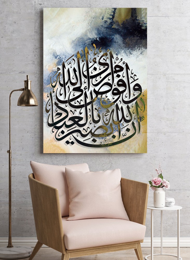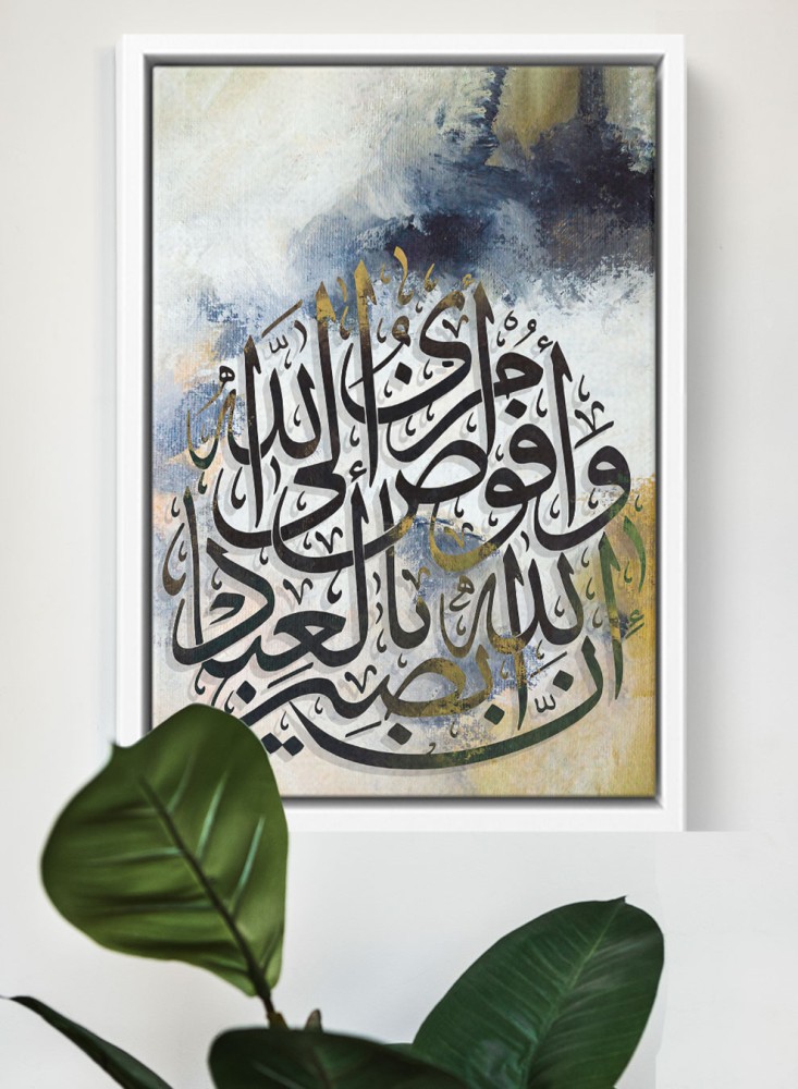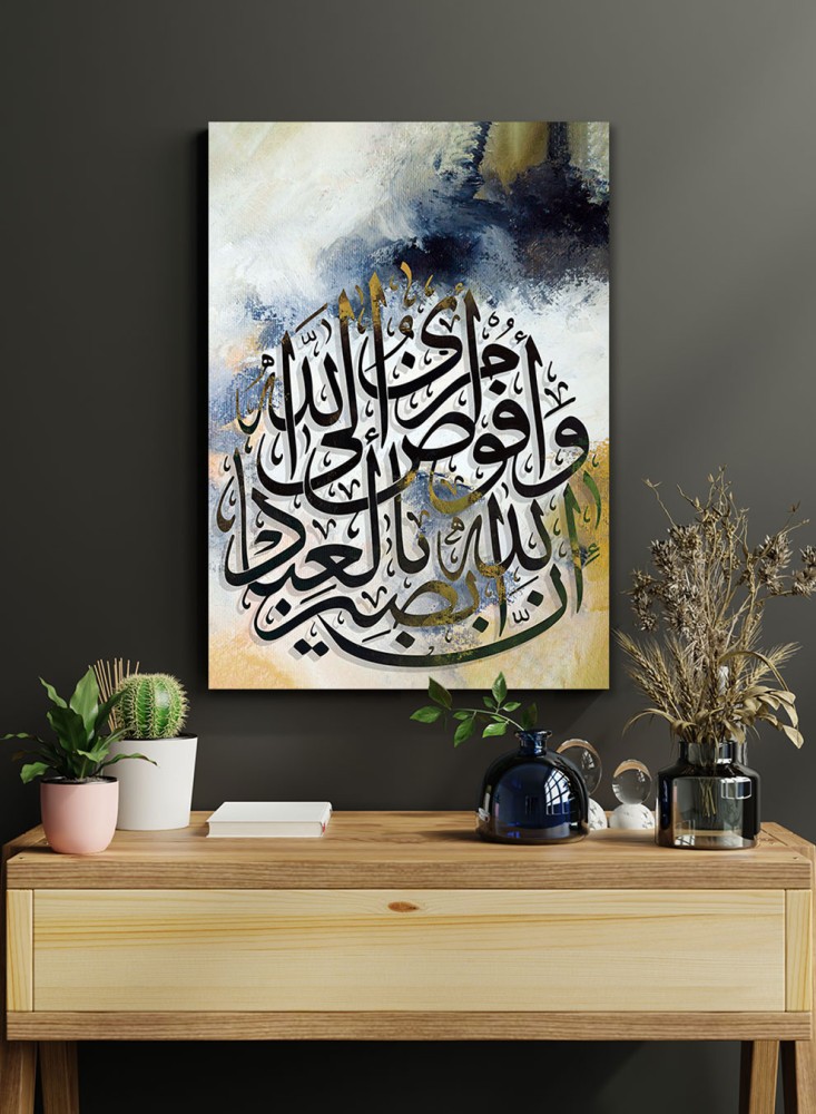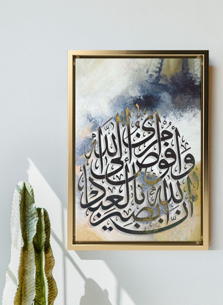 لوحة كانفاس على إطار خشبي بتصميم إسلامي وأفوض أمرى إلى الله