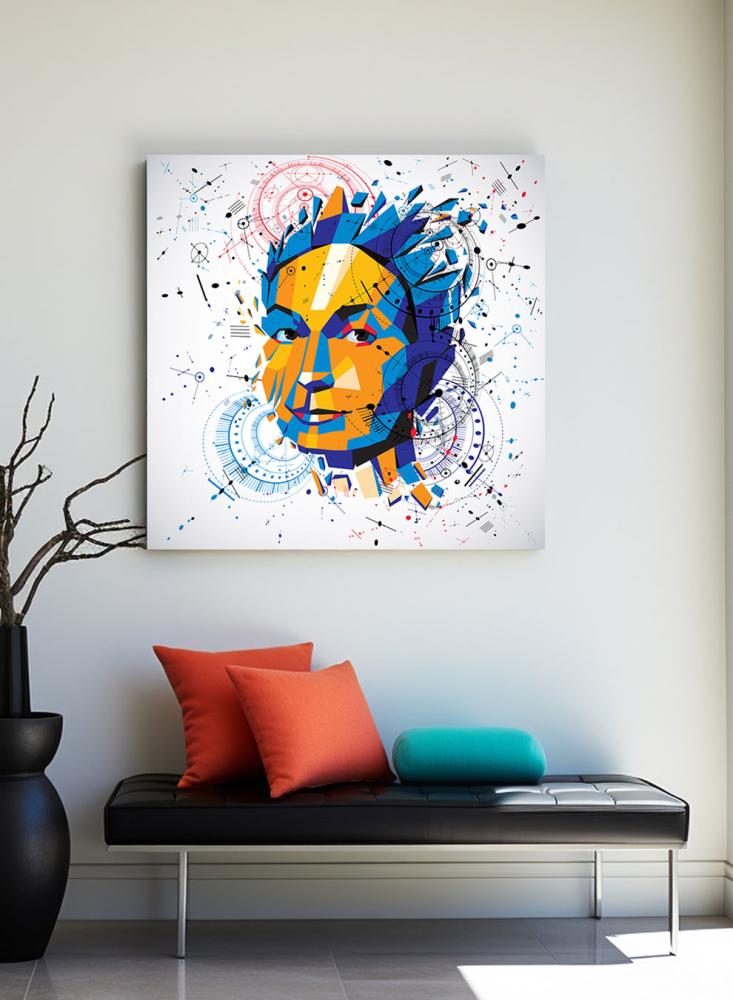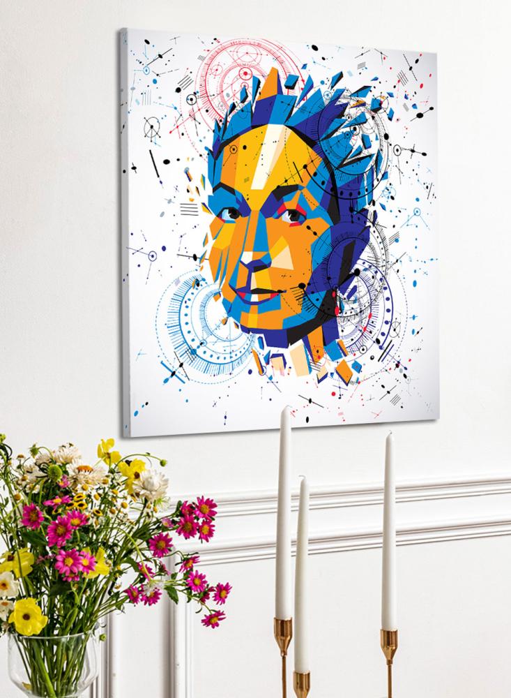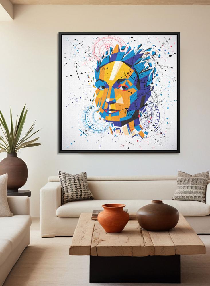 لوحة كانفاس على إطار خشبي بالفن التصوري لتصميم امرأة ذكية