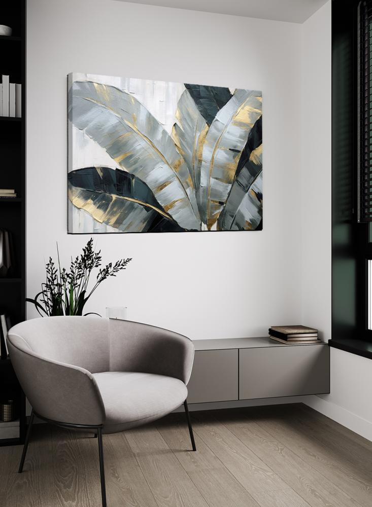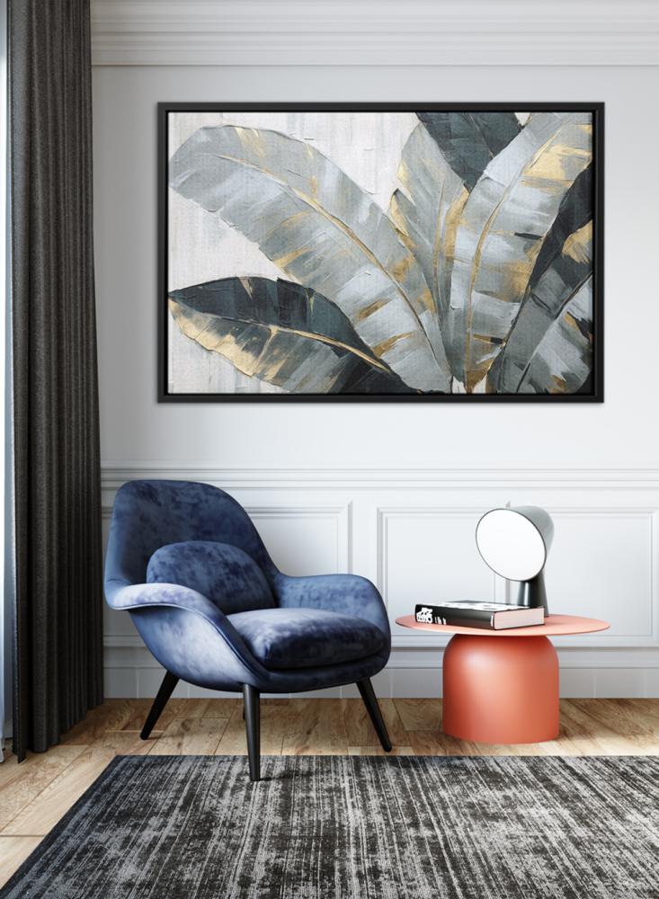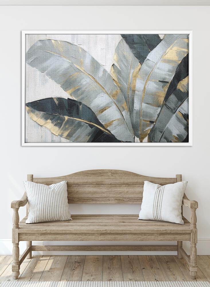 لوحة كانفاس على إطار خشبي بتصميم فن تجريدي لأوراق الشجر