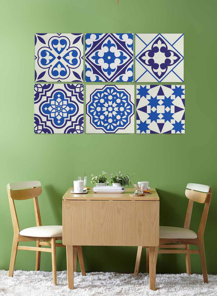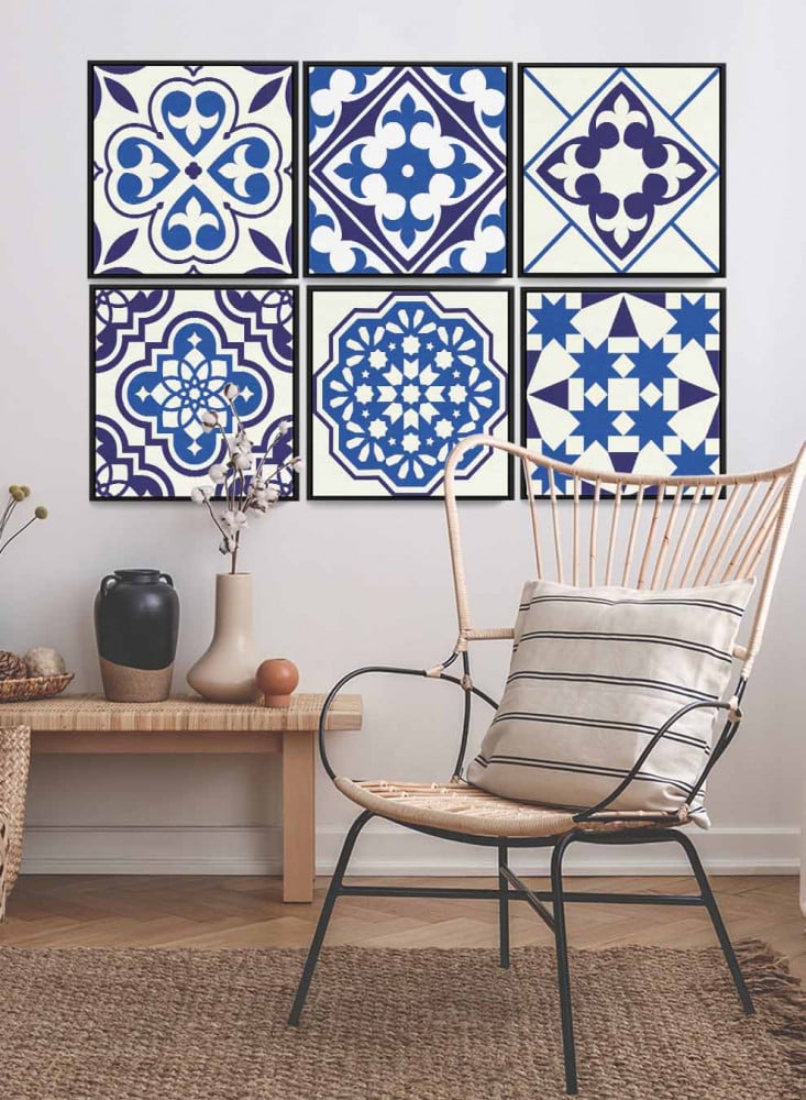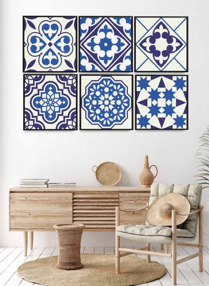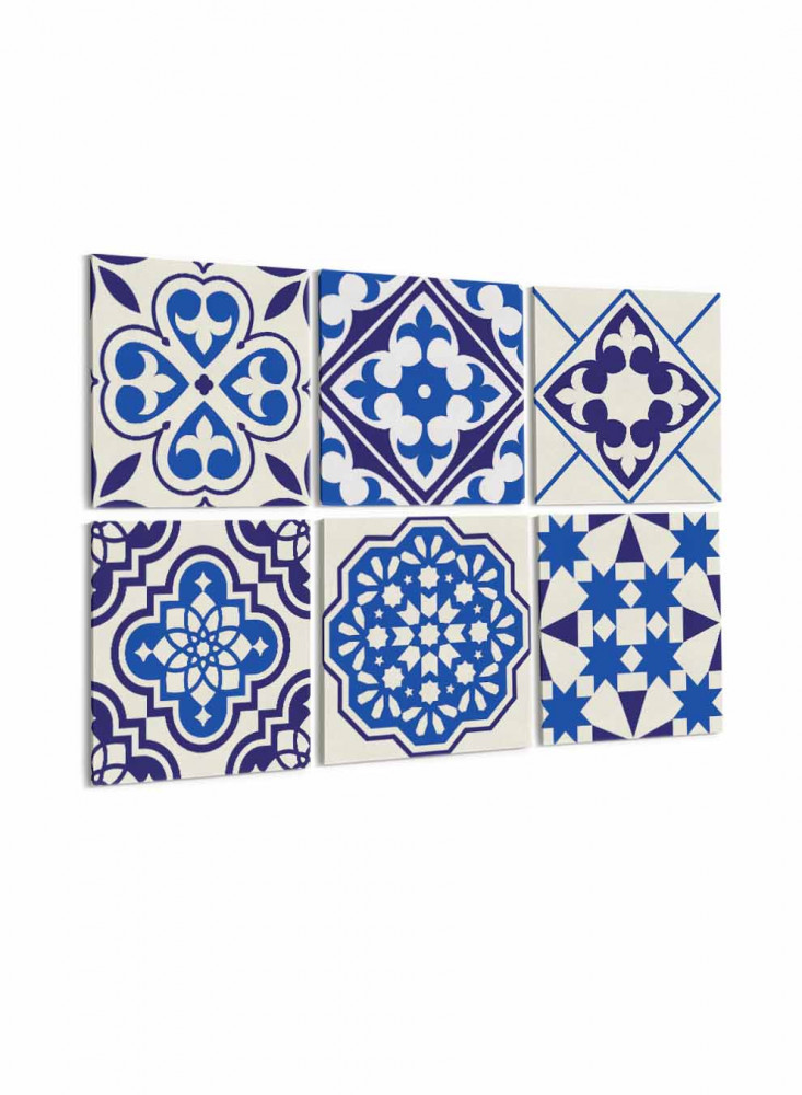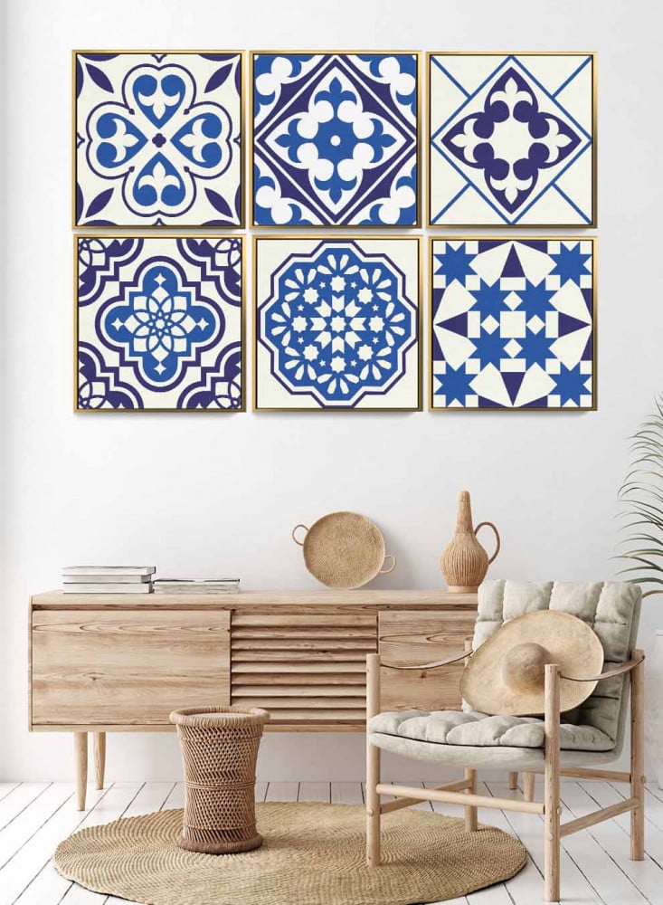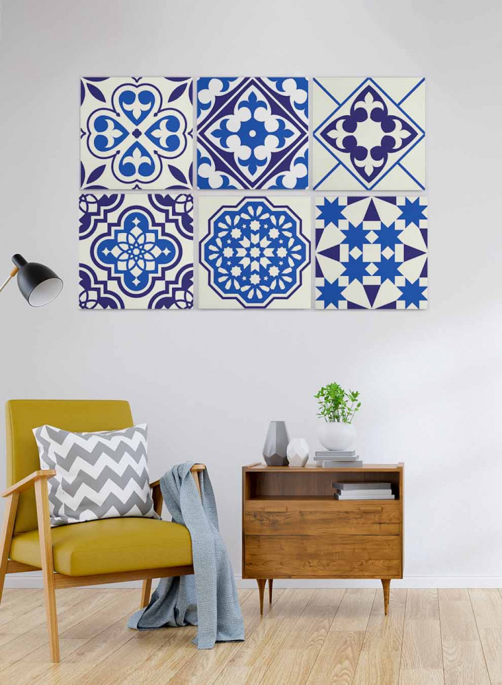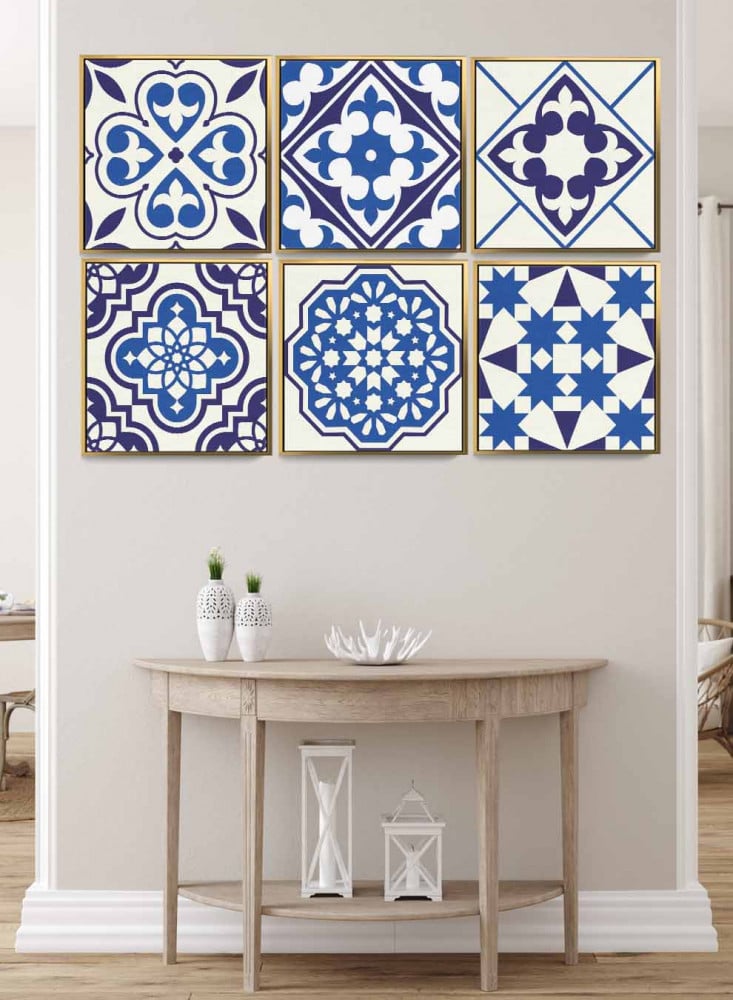 طقم من ٦ لوحات كانفاس مربع على إطار خشبي، تصميم اشكال زهرية مزخرفة ، للمنزل، غرفة المعيشة، المكتب، الديكور