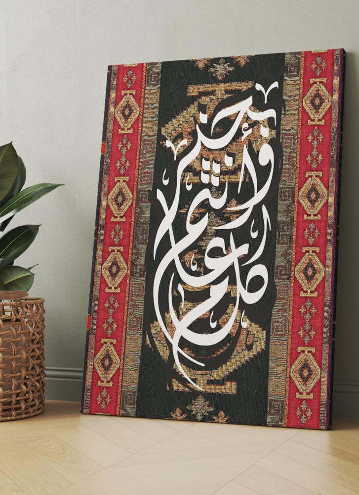 لوحة الكانفاس تصميم فني لعيد الفطر "كل عام وأنتم بخير" تضفي أجواء احتفالية مثالية لأي مكان ترغب في تزيينه خلال المناسبات الخاصة مثل عيد الفطر. يمتاز هذا التصميم بأسلوب مستوحى من السجاد التقليدي، مما يعكس جمالية عريقة بنكهة معاصرة. سواء كنت تود تزيين منزلك أو مكتبك أو أماكن عامة أخرى، فإن هذه اللوحة توفر جاذبية بصريّة وديمومة عالية، بفضل المواد المُستخدمة في إنتاجها.