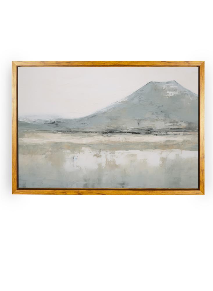 لوحة كانفاس على إطار خشبي بإطار خارجي باللون الخشبي وتصميم منظر كلاسيكي لجبل