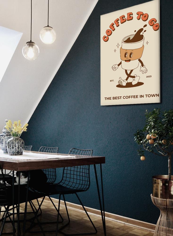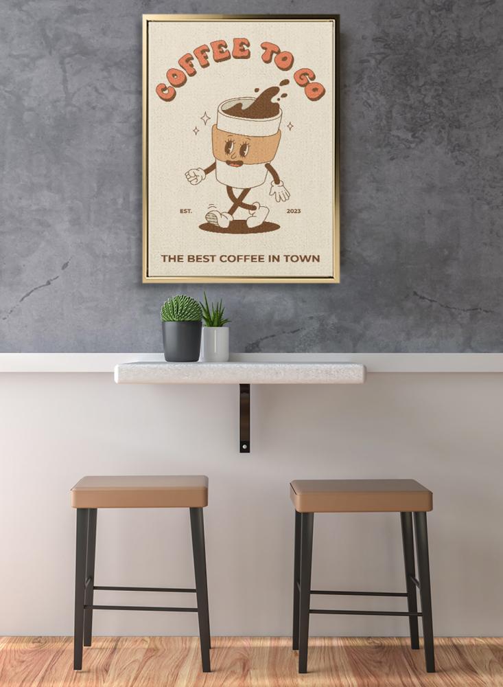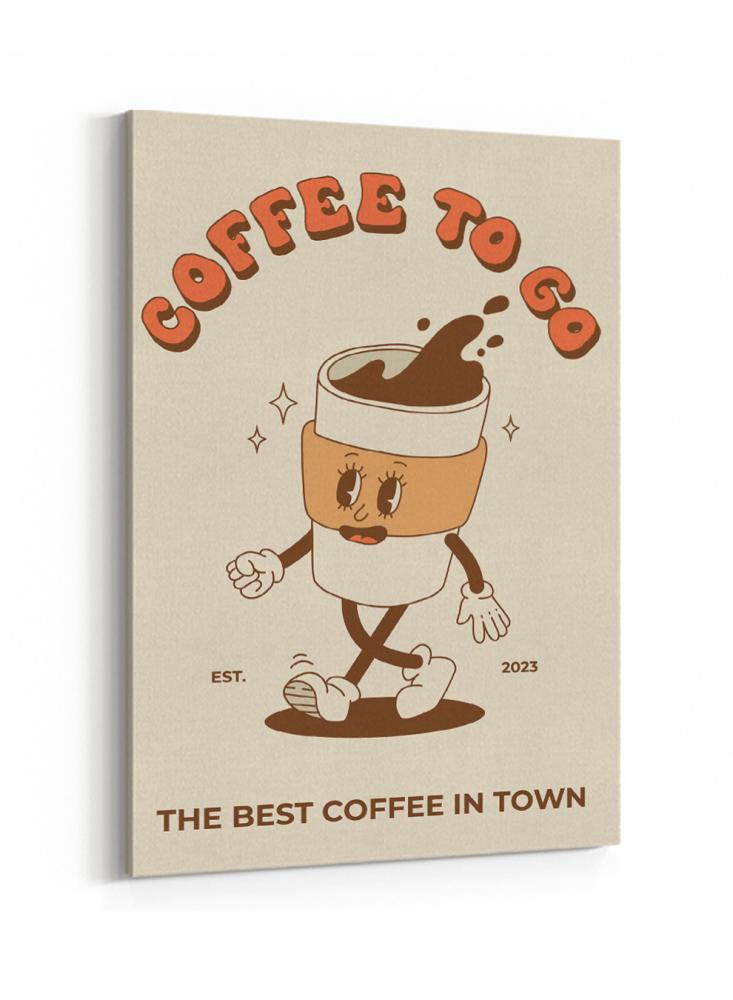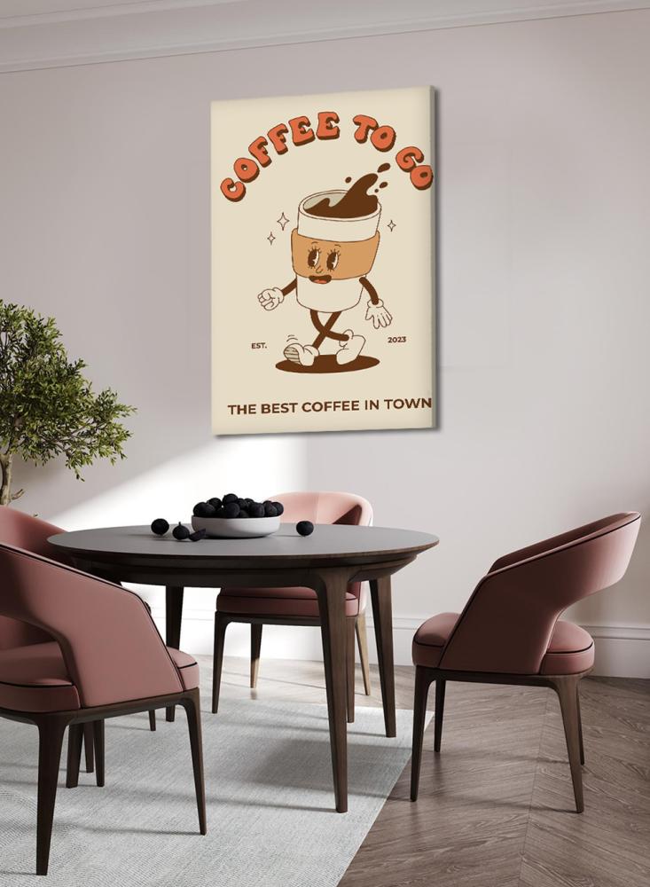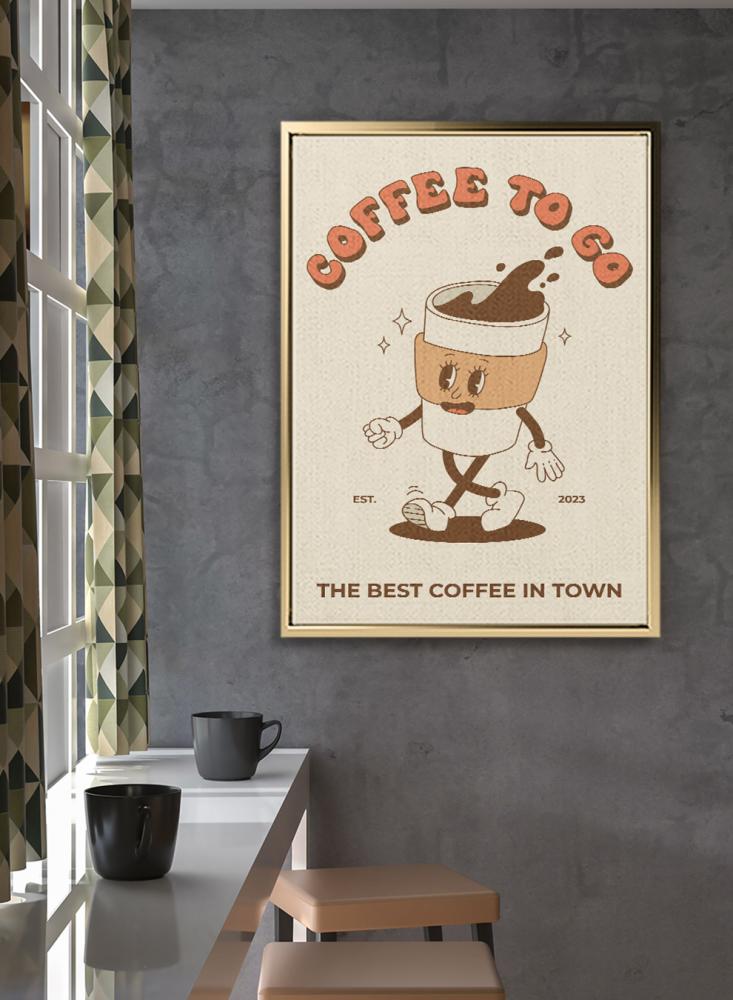 لوحة كانفاس على إطار خشبي بتصميم قهوة للذهاب