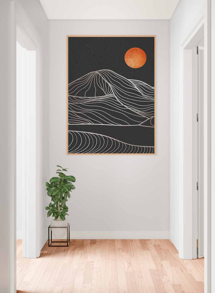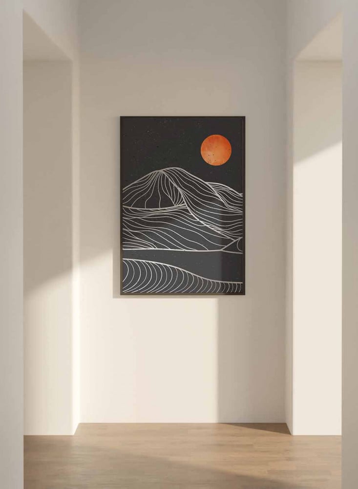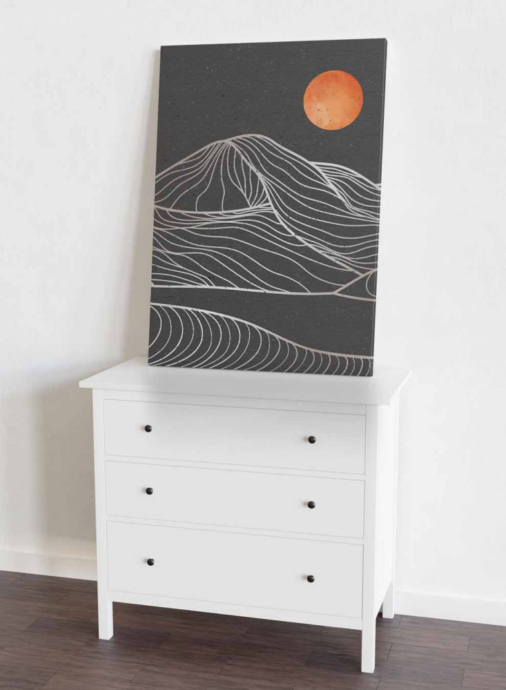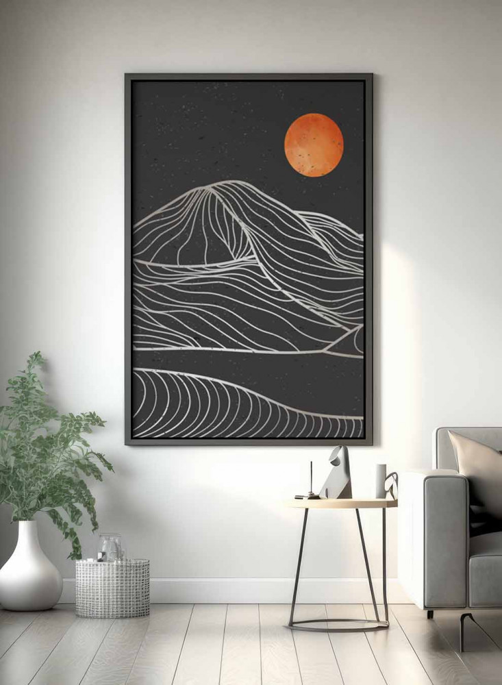 لوحة كانفاس على إطار خشبي، تصميم جبال مع موج المحيط، للمنزل، غرفة المعيشة، المكتب، الديكور