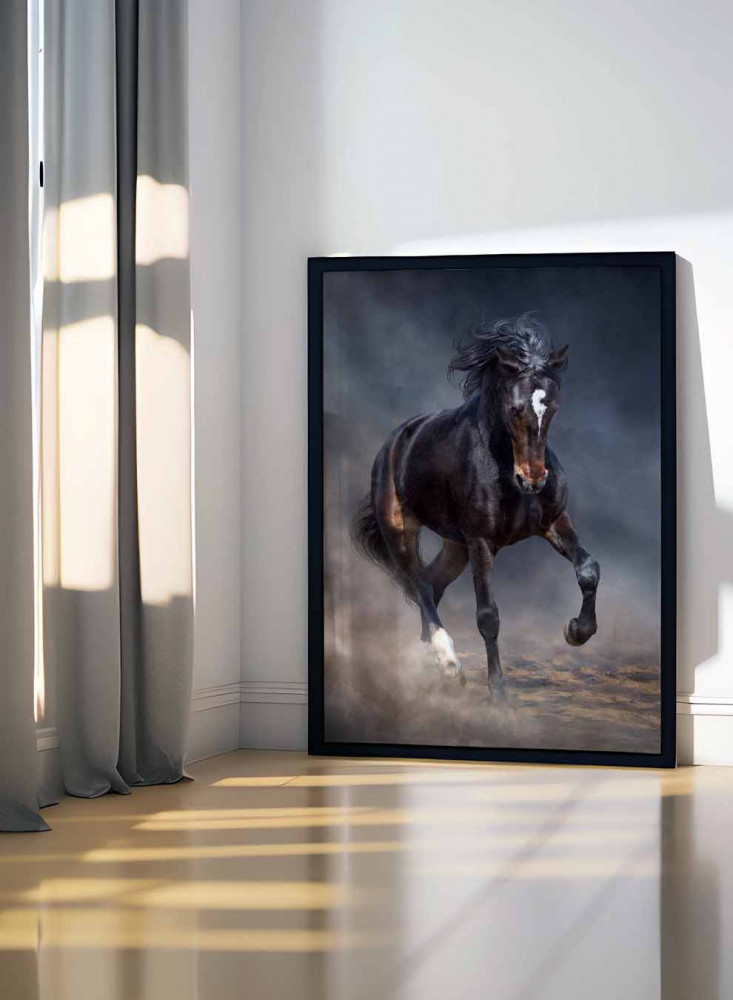 لوحة كانفاس على إطار خشبي، تصميم حصان جامح فى الصحراء، للمنزل، غرفة المعيشة، المكتب، الديكور