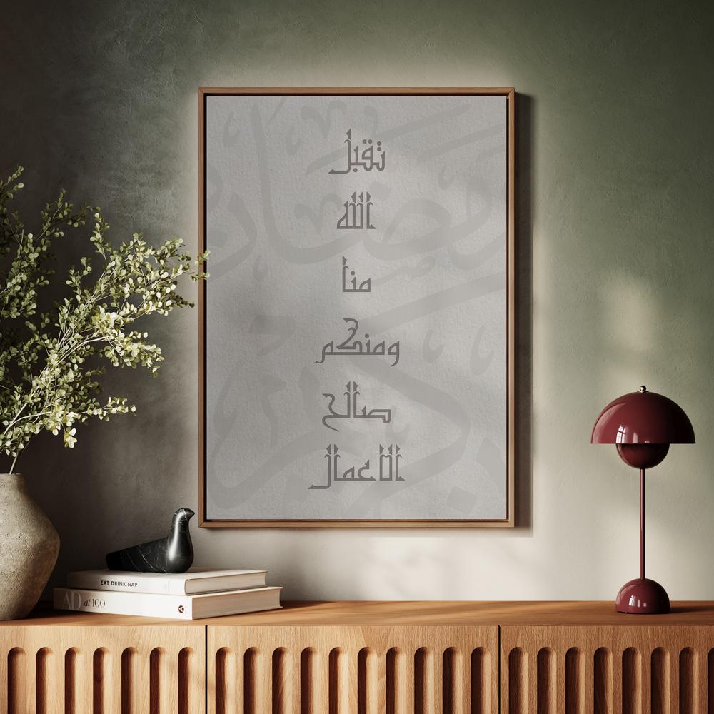 مع قدوم شهر رمضان يبحث الكثير من محبي الفن الإسلامي عن لوحة عن شهر رمضان تكون مناسبة لهم، نرشح لهم هذه اللوحة الجميلة من متجر لوحة. إنها متوفرة في مقاسات مختلفة وبالتالي يمكن إيجاد المناسب من بينها، بالإضافة إلى أنها مصنوعة من خامات عالية الجودة. تأتي اللوحة بتصميم تقبل الله منا ومنكم صالح الأعمال وهو دعاء جميل ومناسب لشهر رمضان. احصل عليها الآن من أجل الاحتفال بشهر رمضان وللتأكيد عن هويتك الإسلامية والثقافية.